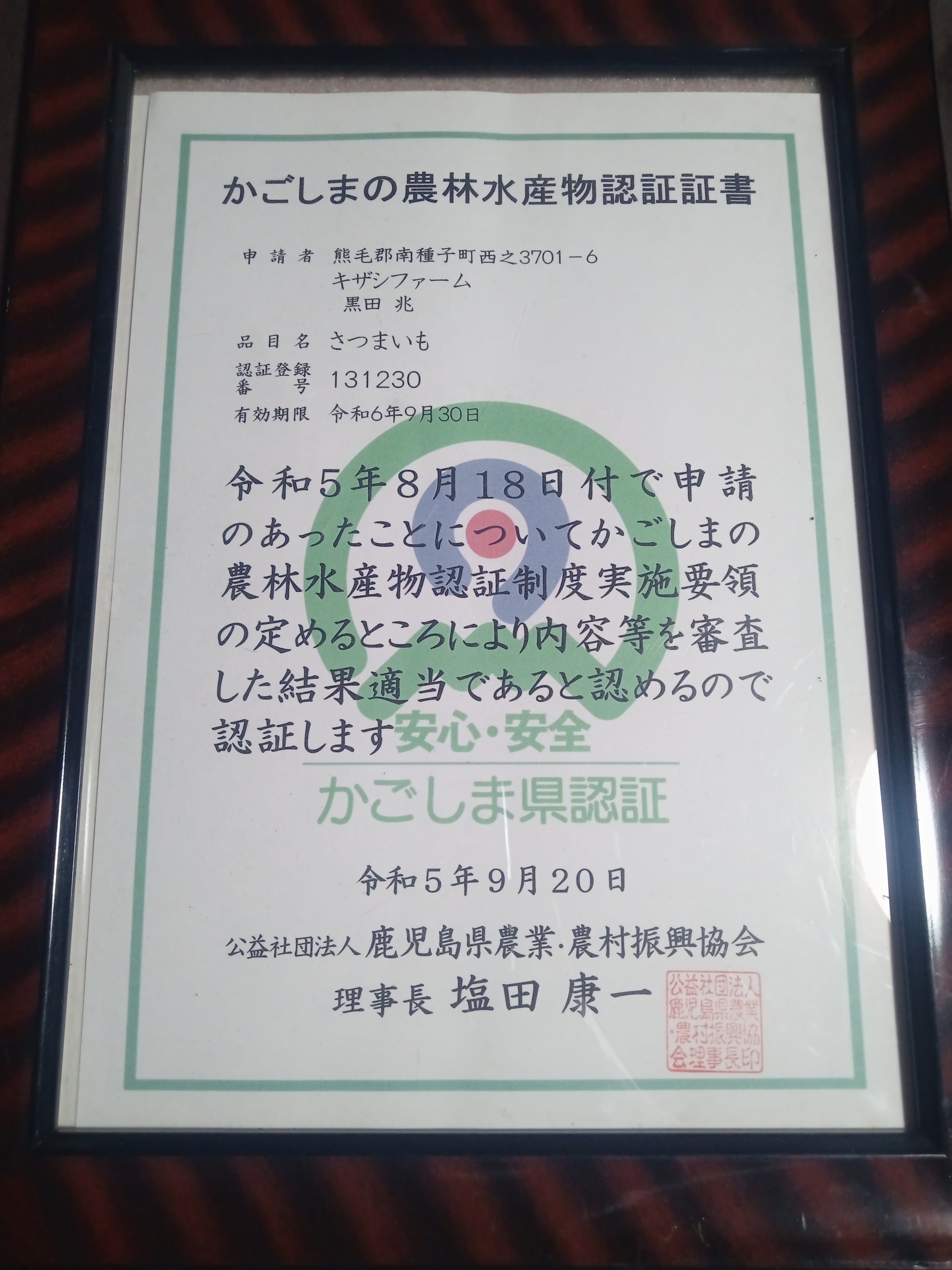 鹿児島県農林水産物認証を取得、ふるさと納税返礼品としての出品。