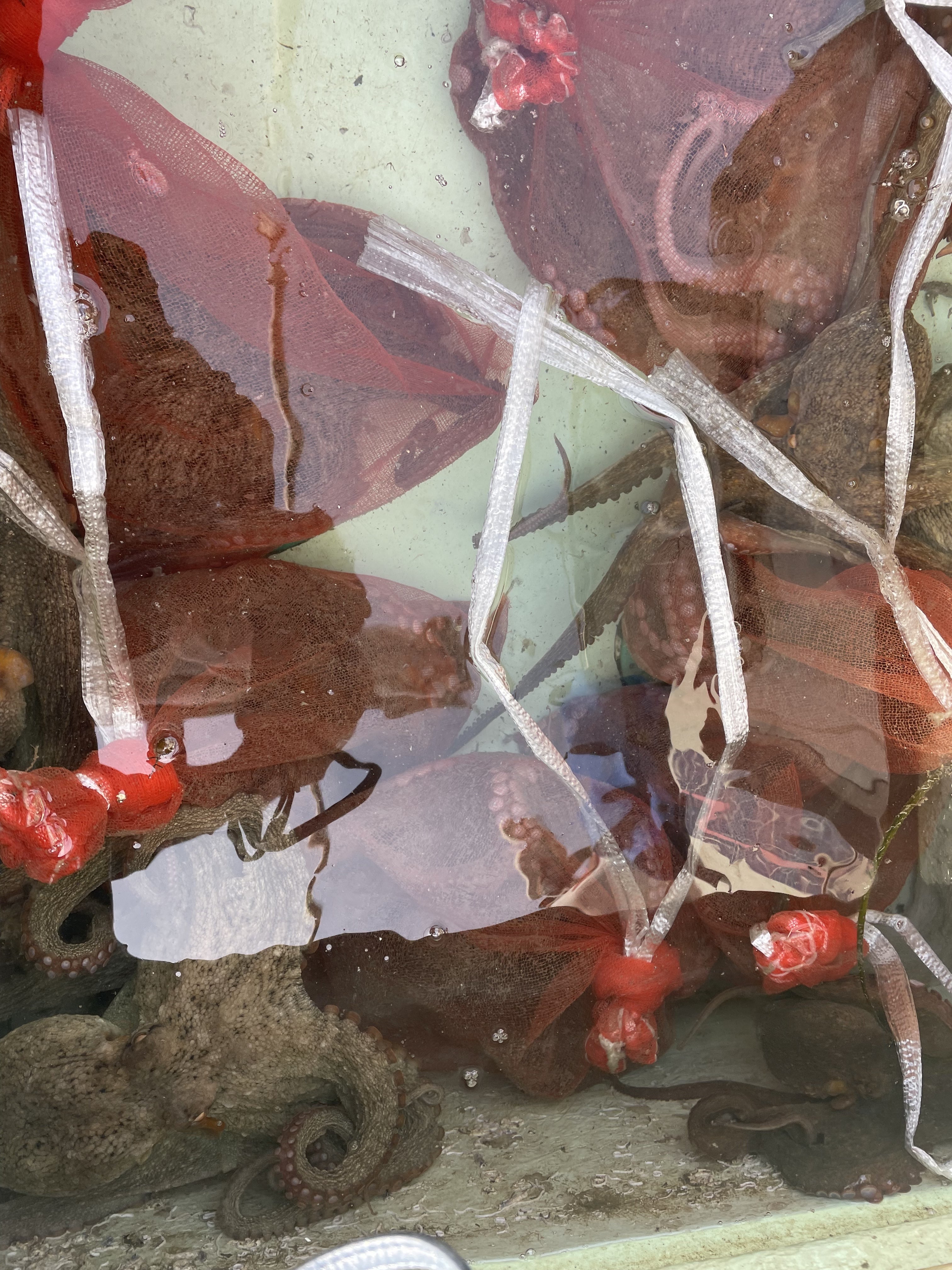 ●蛸壺をあげて元気なタコを網に入れる。そして食べる