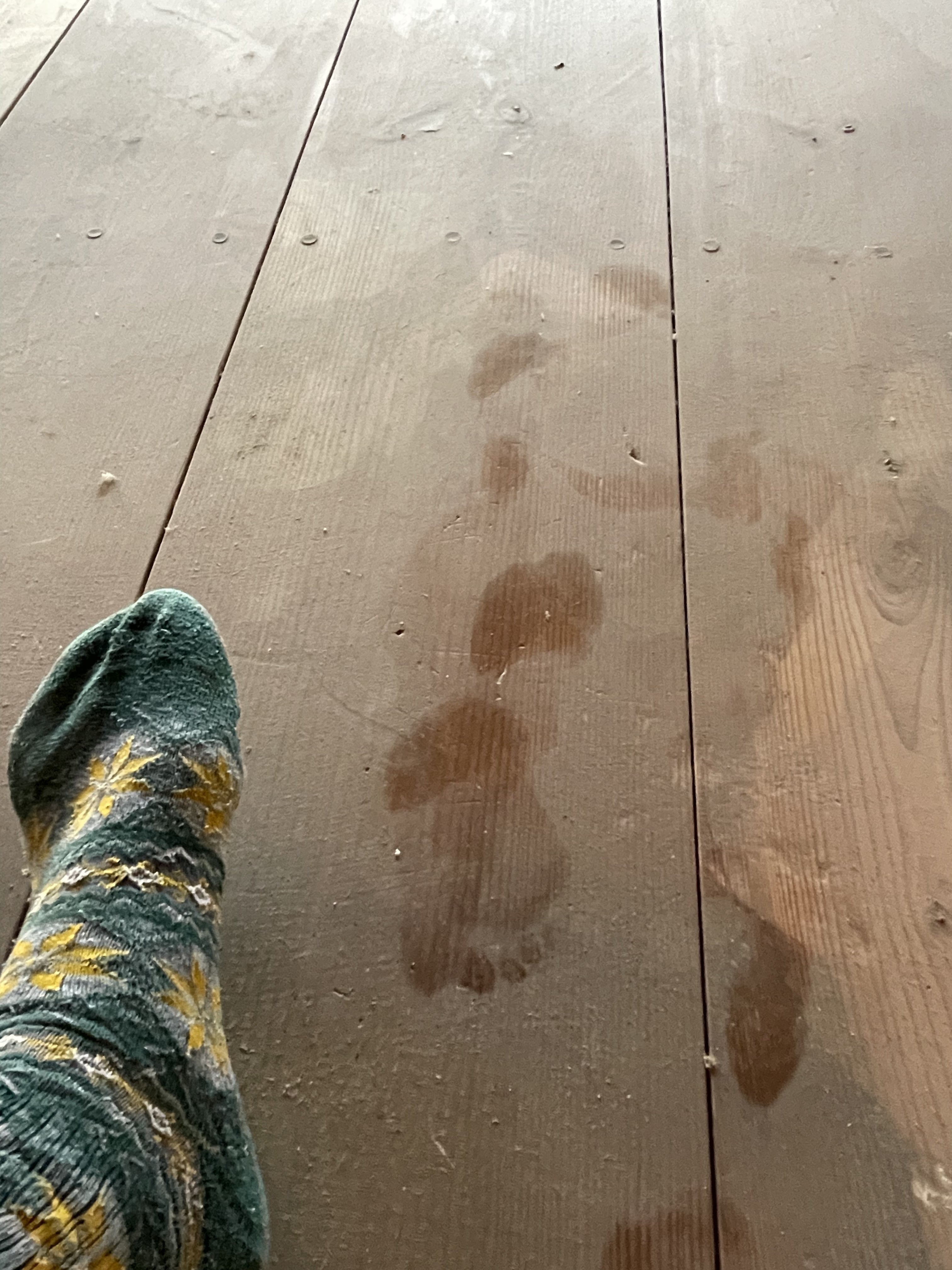 足の写真、ごめんなさい。今日、物件に行ったら、何と小さな足跡が…:(;゙゚'ω゚'):もしや座敷童人が入った形跡無いし、まだまだ埃だらけの床に裸足で⁇何だかワクワクしてきました\(^ω^)/