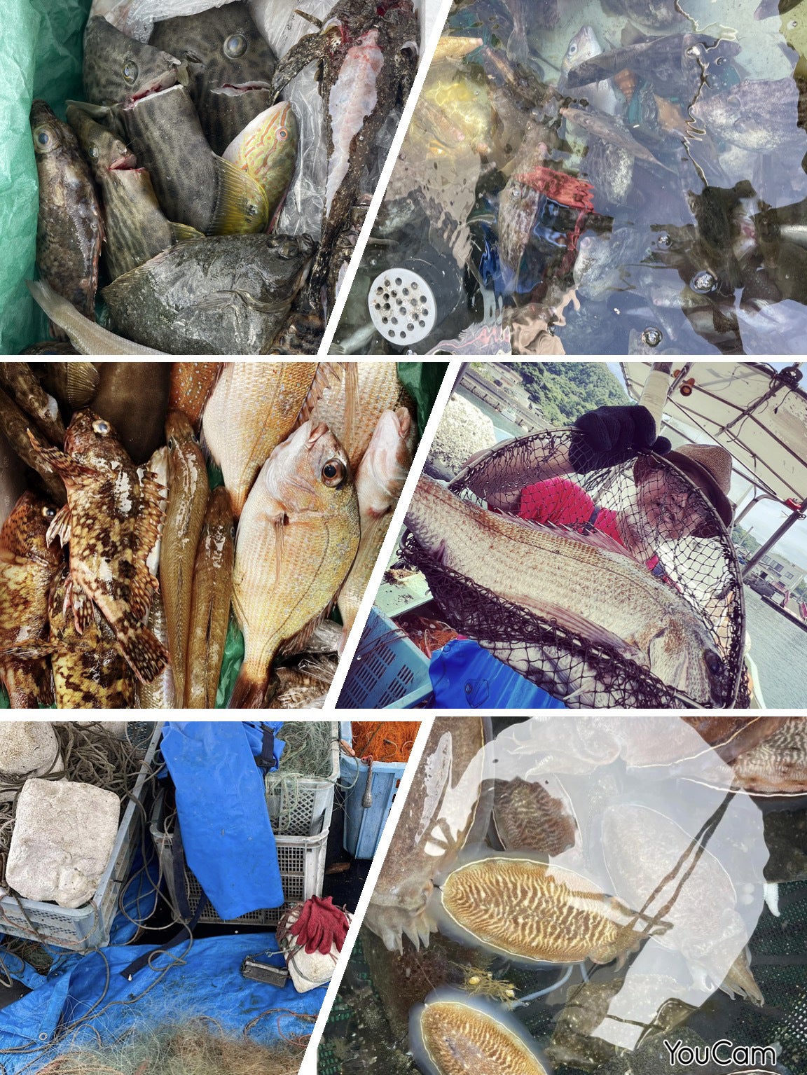 網刺に掛かって上がってくる多種多様な魚達。