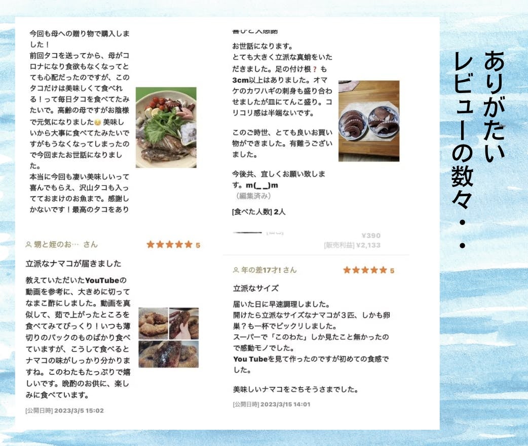 東日本大震、コロナ、戦争、毎年の様に起こる大きな自然災害や争いで日本がそして世界が大変な状況下にも関わらず、54歳でイチから漁師になり子育てと両立しながら夢を追い続けてこれたのは、改めて皆様のご支援のおかげと心より感謝申し上げます。ありがとうございます。