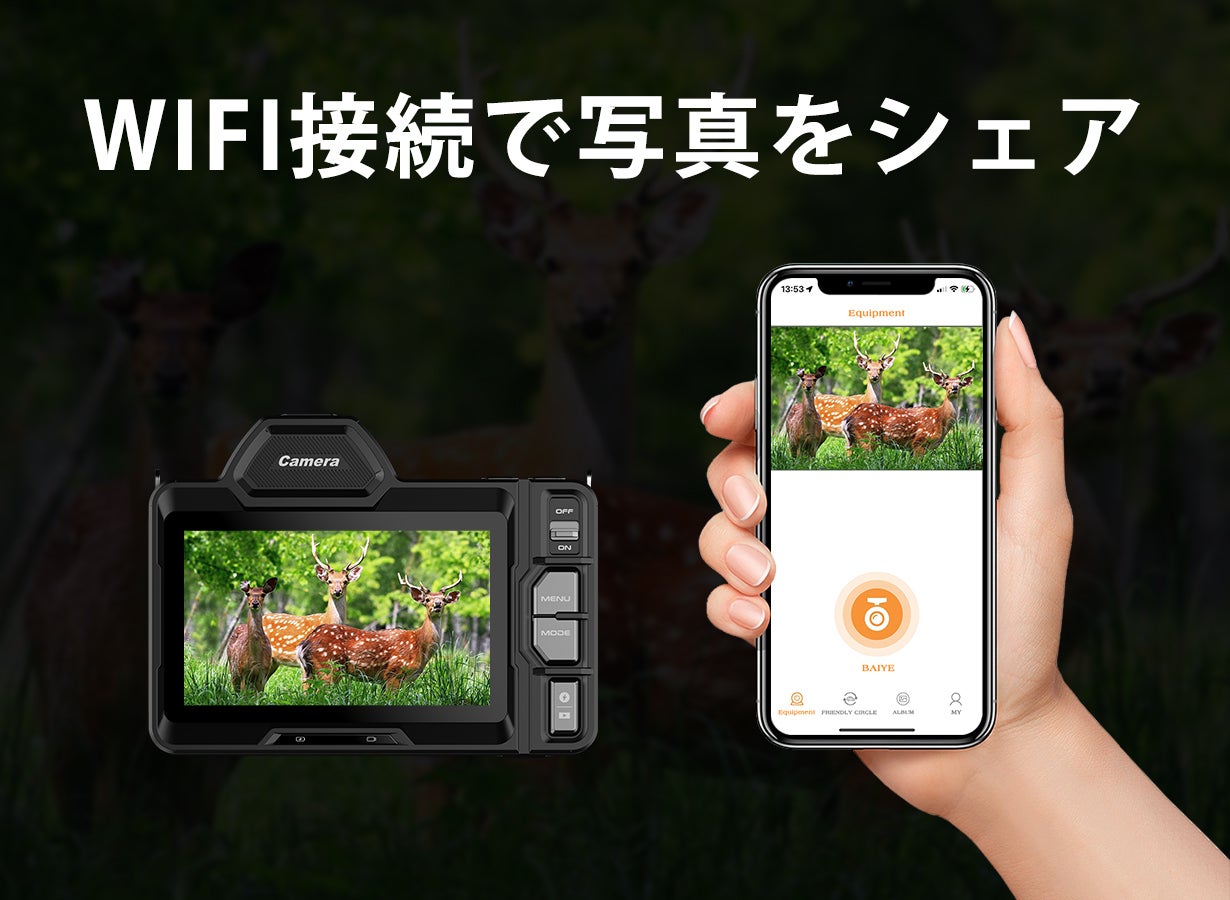 フルカラー撮影赤外線カメラ「虹彩」は、iOS、AndoroidのAPPにも対応しています。WiFi接続で撮影データを家族や友人と共有できます。