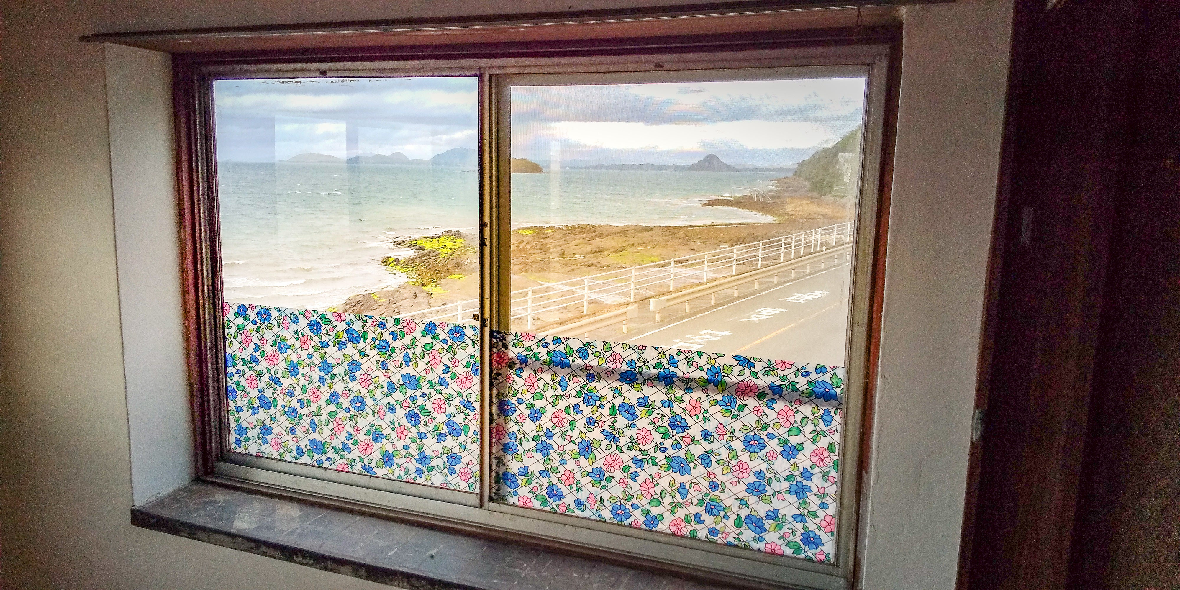 ゲストハウス2階の窓から海と雲仙普賢岳が見えるように改修する予定です。