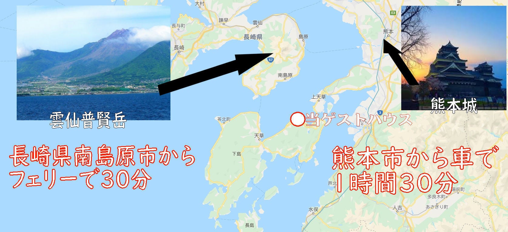 当ゲストハウスに来るには熊本市から車で1時間30分
