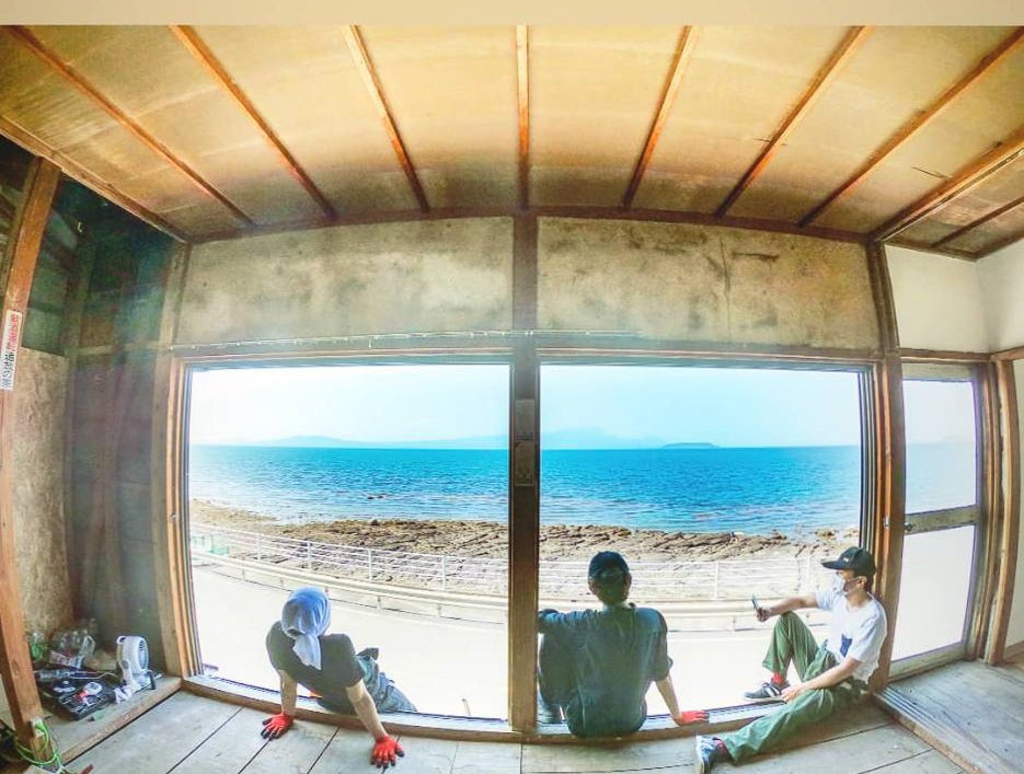 当ゲストハウスの正面は海であり、天気のいい日は雲仙普賢岳を見ることができます。