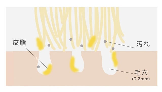 通常、毛穴の大きさは約0.2mmと言われています。綿花の繊維は0.012~0.028mm。毛穴よりも細く柔らかくアプローチ。