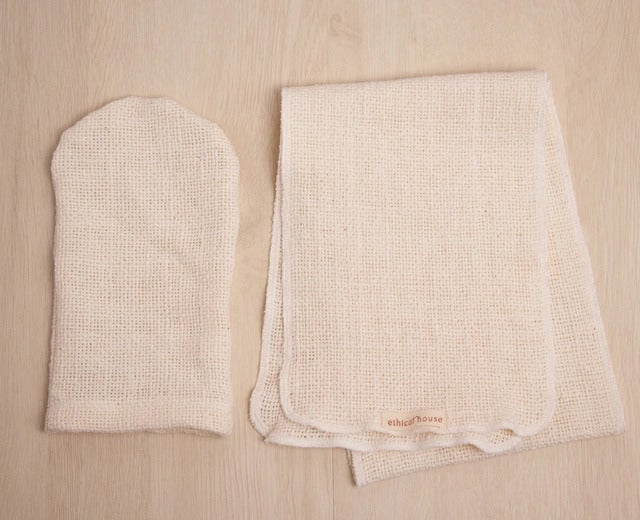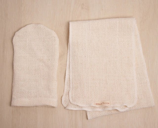 本商品は、綿花100%なのに、水だけで適度な皮脂が落とせる、新感覚のボディケア素材。水だけで洗うので、石鹸やボディソープによる界面活性剤による洗いすぎを避けることができます。