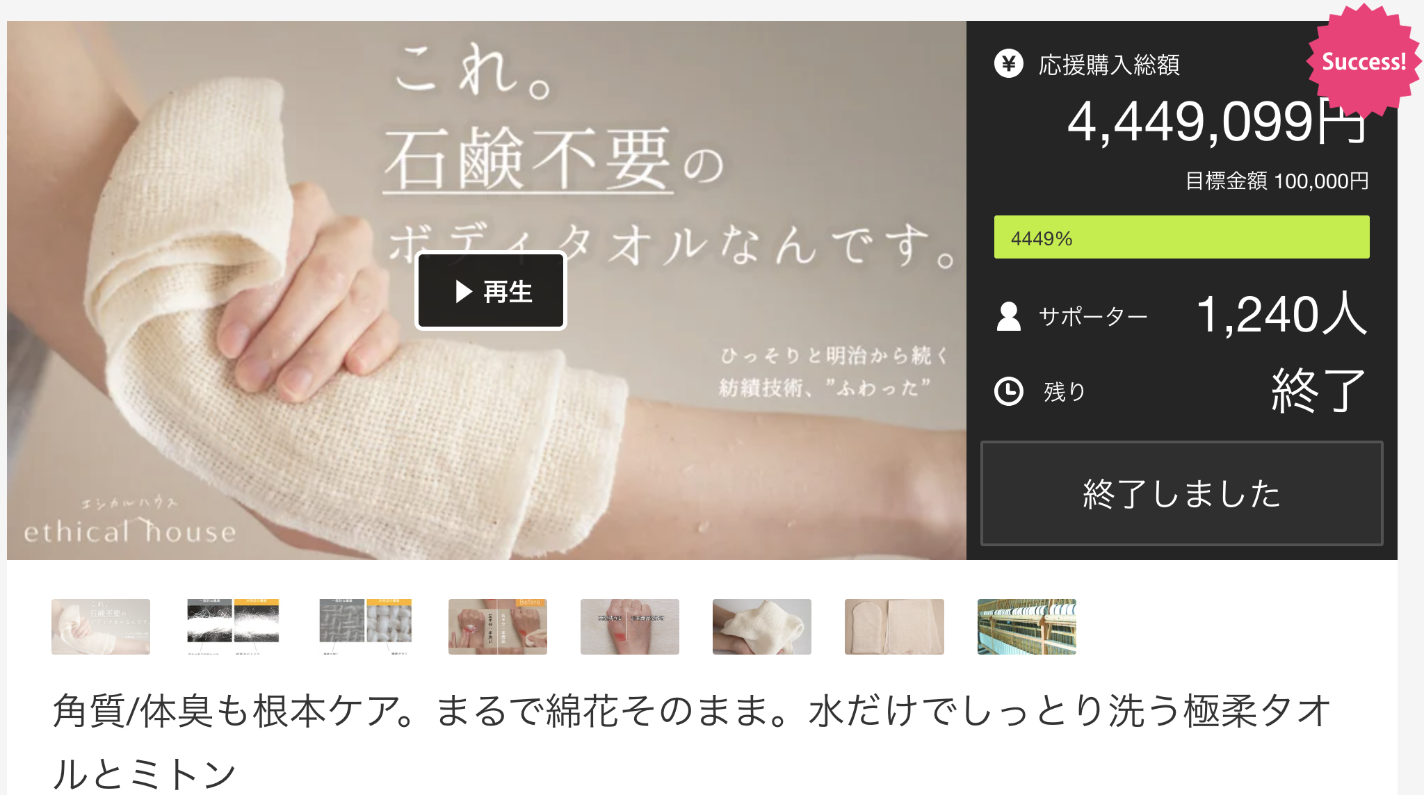 Makuake(マクアケ)さんに先日公開したプロジェクトは、達成率4449%、1,200人を超えるご支援をいただきました。