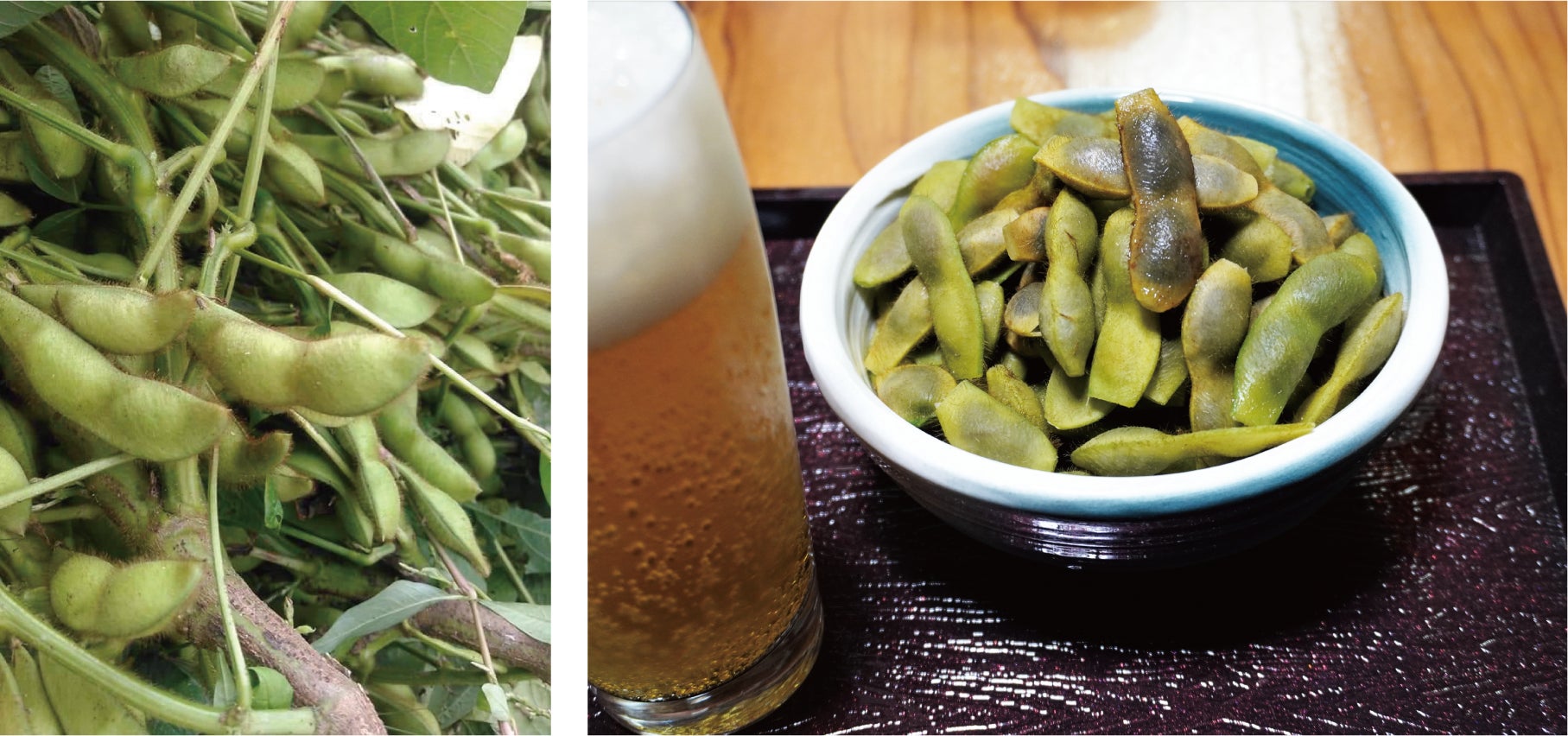 お正月のおせち料理にも使われる黒豆を早どりして枝豆として食すものを「丹波黒枝豆」といいます。
