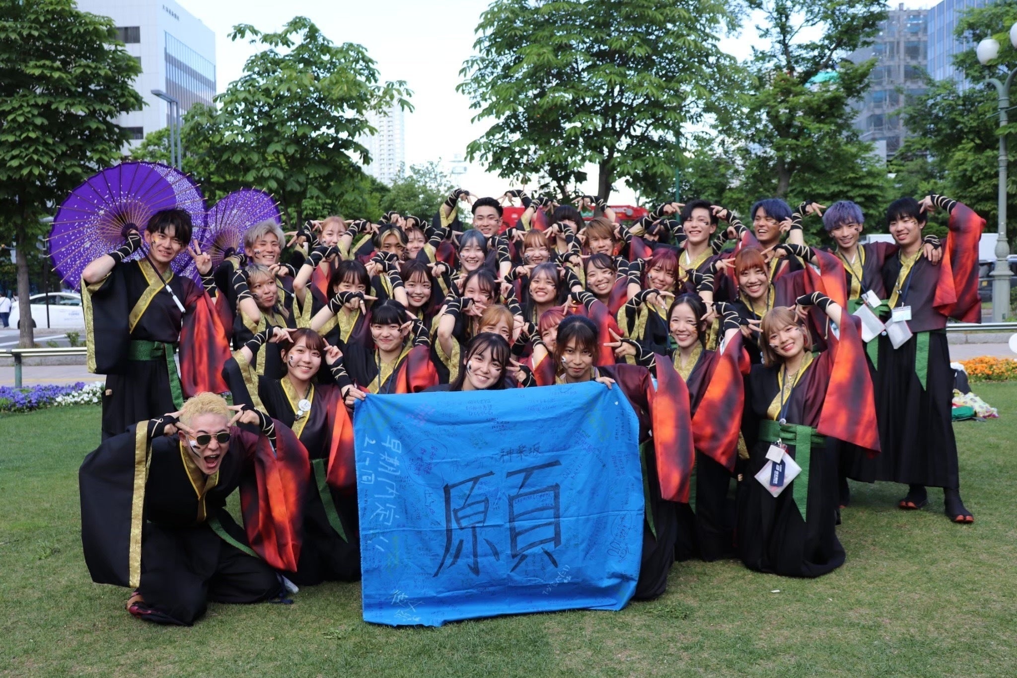 昨年度演舞「想空唄」をこの二世代だけで初めて披露し、世代別や男女別の隊列などユニークな隊列で踊りきりました🌸