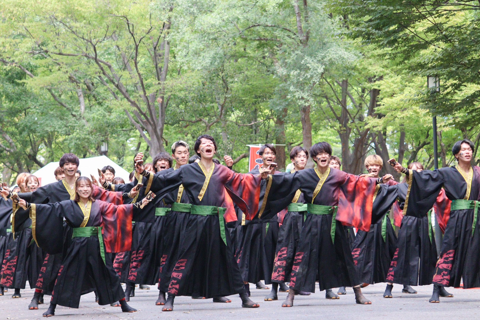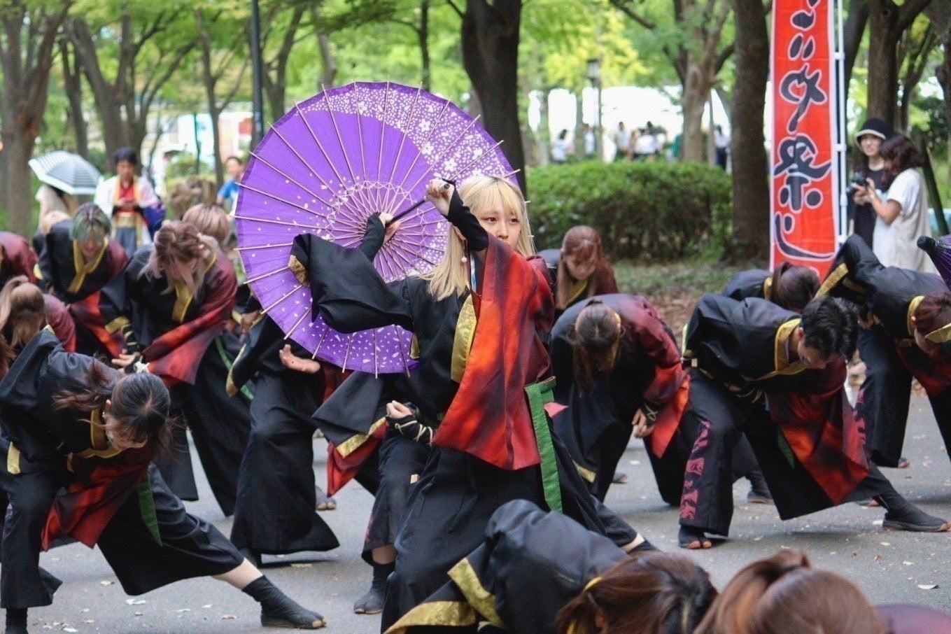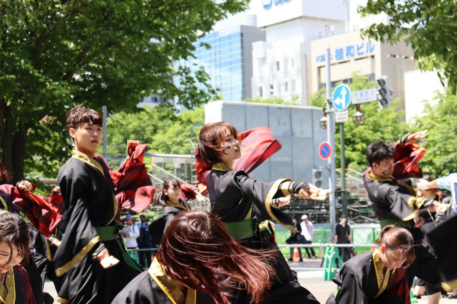 総勢100人超えの部員とともに、自分達で演舞曲、衣装、振り付けなど、1から制作した演舞を日本各地のお祭りにて披露しています。