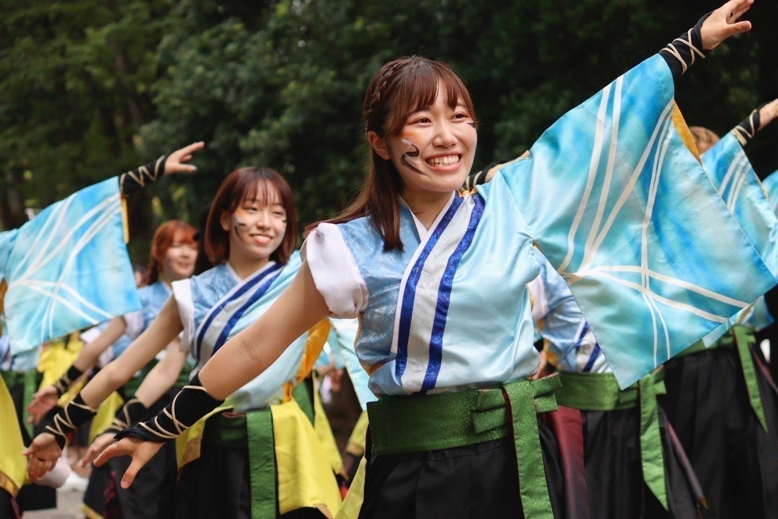 今年の演舞は、観客の皆さんにお楽しみいただくことはもちろん、踊り子一人一人が心の底から踊っていて楽しいと思えるような演舞にしたいという想いのもと制作いたしました。コロナ禍がようやく終わりに差し掛かり、お祭りも数年ぶりに通常開催となっている今日、それぞれがコロナ禍で抱えた不安や様々な想いをこの演舞にのせ、全身全霊をかけて踊ることのできる演舞であると自負しております。ご覧いただく際は、ぜひ踊り子一人一人の表情にも注目していただけると幸いです。
