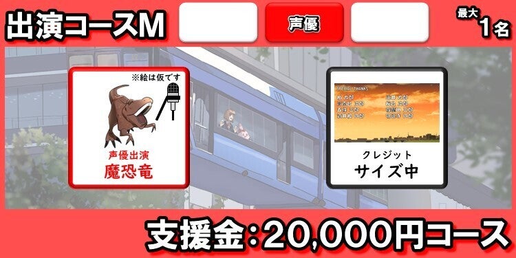 みなさん、こんにちは。この度は、私たちが計画する「声優やキャラクターが参加できる千葉が舞台の地上波TVアニメ制作プロジェクト」ページを見てくださり、誠にありがとうございます。このプロジェクトは、私たちが制作している千葉を舞台にしたご当地作品の第5期「超普通マホウ少女 アスミトルバース」の制作およびTVアニメ放送を目的としたものです。3/1金22時に返礼品追加第5弾を行います。今回の追加返礼品は4本です。【内容1】YouTubeなどで公開する次回予告第2話~第13話の声優を「あなた自身」または「あなたの知人」が担当できます/出演作品:制作内容A「第5期 超普通マホウ少女 アスミトルバース」のどこか1話/TV放送では使用されず、SNSのみでの配信の予定/注釈O参照【内容2】好きなお名前をクレジット掲載します/掲載作品:制作内容A「第5期 超普通マホウ少女 アスミトルバース」EDおよびHP/クレジットサイズ:中/備考欄に希望するお名前を記載ください/注釈A参照注釈O【予告ナレーション】・制作内容A「超普通マホウ少女 アスミトルバース」音声収録は、2024年11月~12月、2025年3月~4月頃を予定しております・基本的には、レギュラー声優とは別日での収録となります・弊社から出演に関する報酬はございません・収録した音声の動画はTV放送では使用されず、SNSのみでの配信の予定です◇収録場所プラチナムガレージ〒164-0003 東京都中野区東中野4-27-33エムエス東中野 B1http://www.platinumgarage.jp/【内容1】あなたの自作キャラクターが作品に出演できます/出演作品:制作内容A「第5期 超普通マホウ少女 アスミトルバース」のどこか1話/台詞はあらすじ10秒/キャラクターをおまかせにすることも可能です/注釈B参照【内容2】内容1の声優を「あなた自身」または「あなたの知人」が担当できます/出演作品:制作内容A「第5期 超普通マホウ少女 アスミトルバース」のどこか1話/台詞はあらすじ10秒/声優をおまかせにすることも可能です/注釈P参照【内容3】好きなお名前をクレジット掲載します/掲載作品:制作内容A「第5期 超普通マホウ少女 アスミトルバース」EDおよびHP/クレジットサイズ:中/備考欄に希望するお名前を記載ください/注釈A参照注釈P【早口あらすじチャレンジ】・普通に読んだら30秒くらいかかるナレーションを早口でどこまで言えるか挑戦!3回チャレンジで失敗しても本編で使用されるのは10秒です・制作内容A「超普通マホウ少女 アスミトルバース」音声収録は、2024年11月~12月、2025年3月~4月頃を予定しております・基本的には、レギュラー声優とは別日での収録となります・あなたの知人が声優を担当する場合、基本的には弊社からあなたの知人に直接連絡はせず、あなたを通してやり取りをいたします・弊社から出演に関する報酬はございません◇収録場所プラチナムガレージ〒164-0003 東京都中野区東中野4-27-33エムエス東中野 B1http://www.platinumgarage.jp/【内容1】「魔界の龍」の声優を「あなた自身」または「あなたの知人」が担当できます/出演作品:制作内容A「第5期 超普通マホウ少女 アスミトルバース」のどこか1話/台詞は一言/注釈C参照【内容2】好きなお名前をクレジット掲載します/掲載作品:制作内容A「第5期 超普通マホウ少女 アスミトルバース」EDおよびHP/クレジットサイズ:中/備考欄に希望するお名前を記載ください/注釈A参照【内容1】第5期「超普通マホウ少女 アスミトルバース」のTVアニメ台本(前半)をお届けします/第1話~第6話掲載/注釈G参照【内容2】第5期「超普通マホウ少女 アスミトルバース」のTVアニメ台本(後半)をお届けします/第7話~第13話掲載/注釈G参照【内容3】内容1または内容2のどちらか希望する台本に異能田翔子役の桜衣かこさん直筆サインがつきます/希望する台本を選択ください/注釈J参照【内容4】好きなお名前をクレジット掲載します/掲載作品:制作内容A「第5期 超普通マホウ少女 アスミトルバース」EDおよびHP/クレジットサイズ:小/備考欄に希望するお名前を記載ください/注釈A参照本プロジェクトは3/10日まで実施しております。もしよければ、一緒にTVアニメを作りませんか。みなさんのご参加お待ちしております。
