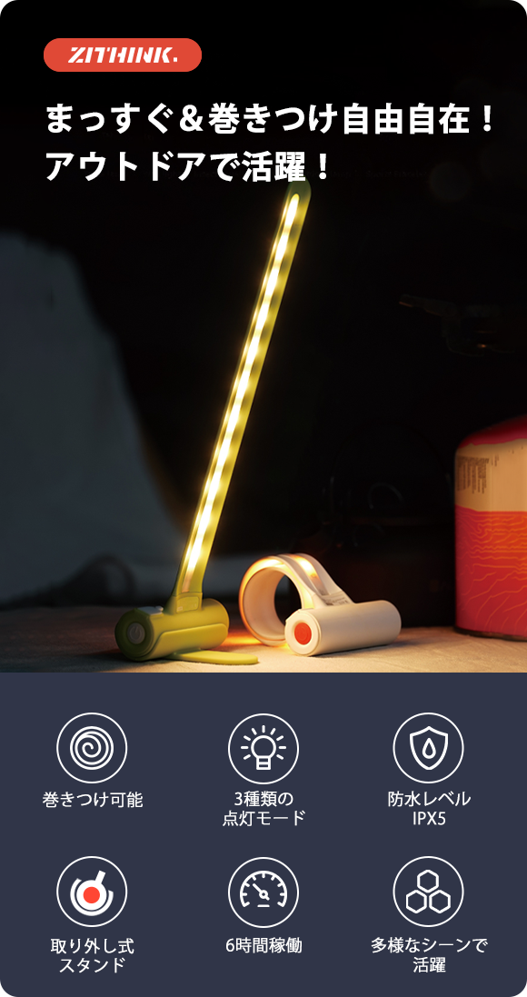 PL1は、くるっと丸めて巻きつけられるユニークなデザインのポータブルライトです。屋外でも屋内でも、お好きな場所に設置して使えます。