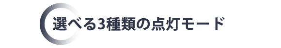 点灯モードは3種類あり、シーンに合わせてお選びいただけます。白色モードは夜間に視界をはっきり照らしたい時に、目に優しい黄色モードはテントの中にぶら下げたり、リュックサックに装着したりする時に適しています。点滅する警告モードは、ツーリングやランニング中に周囲に存在を知らせたい時にぴったりです。