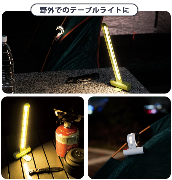 スタンドを壁に貼り付ければ、場所を取らずに設置可能です。ご自宅でもキャンプでも、最適なスタイルでお使いいただけます。