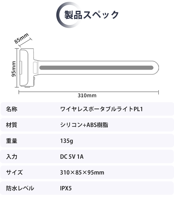 スリムでコンパクトな PL1ですが、大容量リチウムバッテリー内蔵で最大5時間稼働可能ですので、一晩中使用できます。