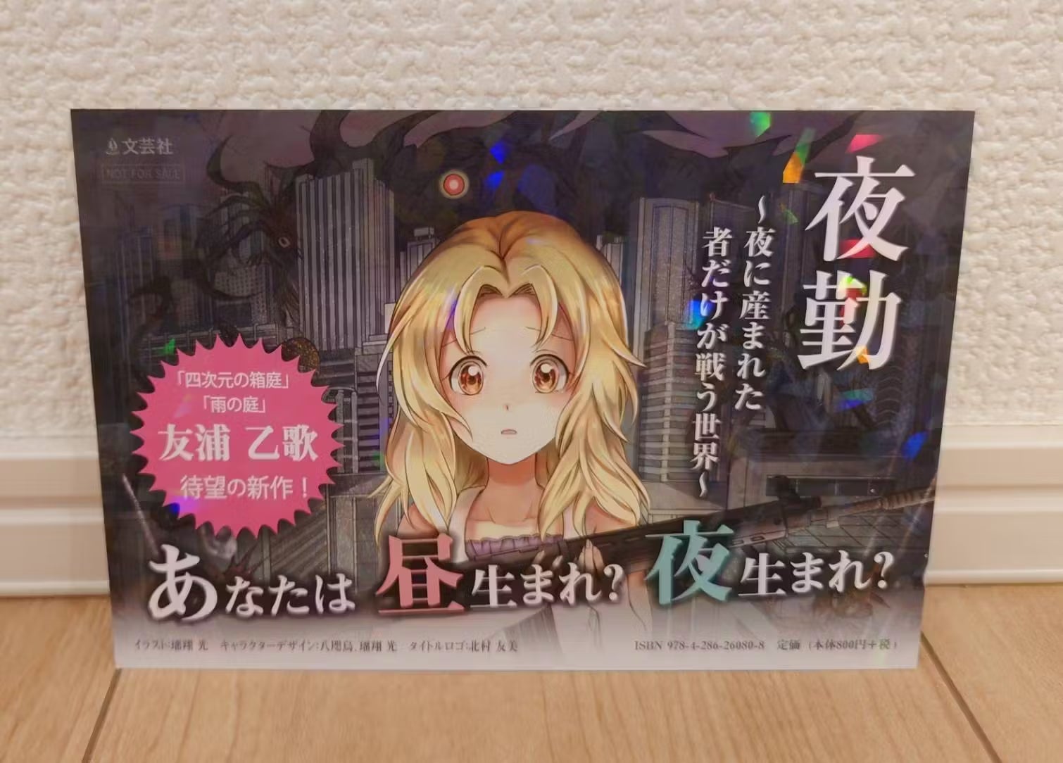 文芸社謹製『夜勤 ~夜に産まれた者だけが戦う世界~』(著 友浦乙歌)の書店さん用POP