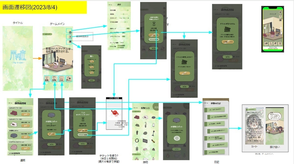 『雨の庭』は、「ほしいものがなんでも手に入る楽園のような世界」という世界観ですので、「タダで何でも買えちゃう」ってところをゲーム内で体験してもらう方法はないかと頭をひねって、考えました。