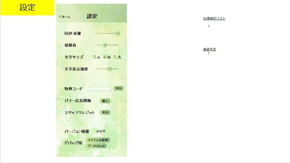 全体のデザインが決まり、アイテムイラストも9割ほど出揃い、シナリオやフレーバーテキストは作成済みです。プログラムも9割ができました!