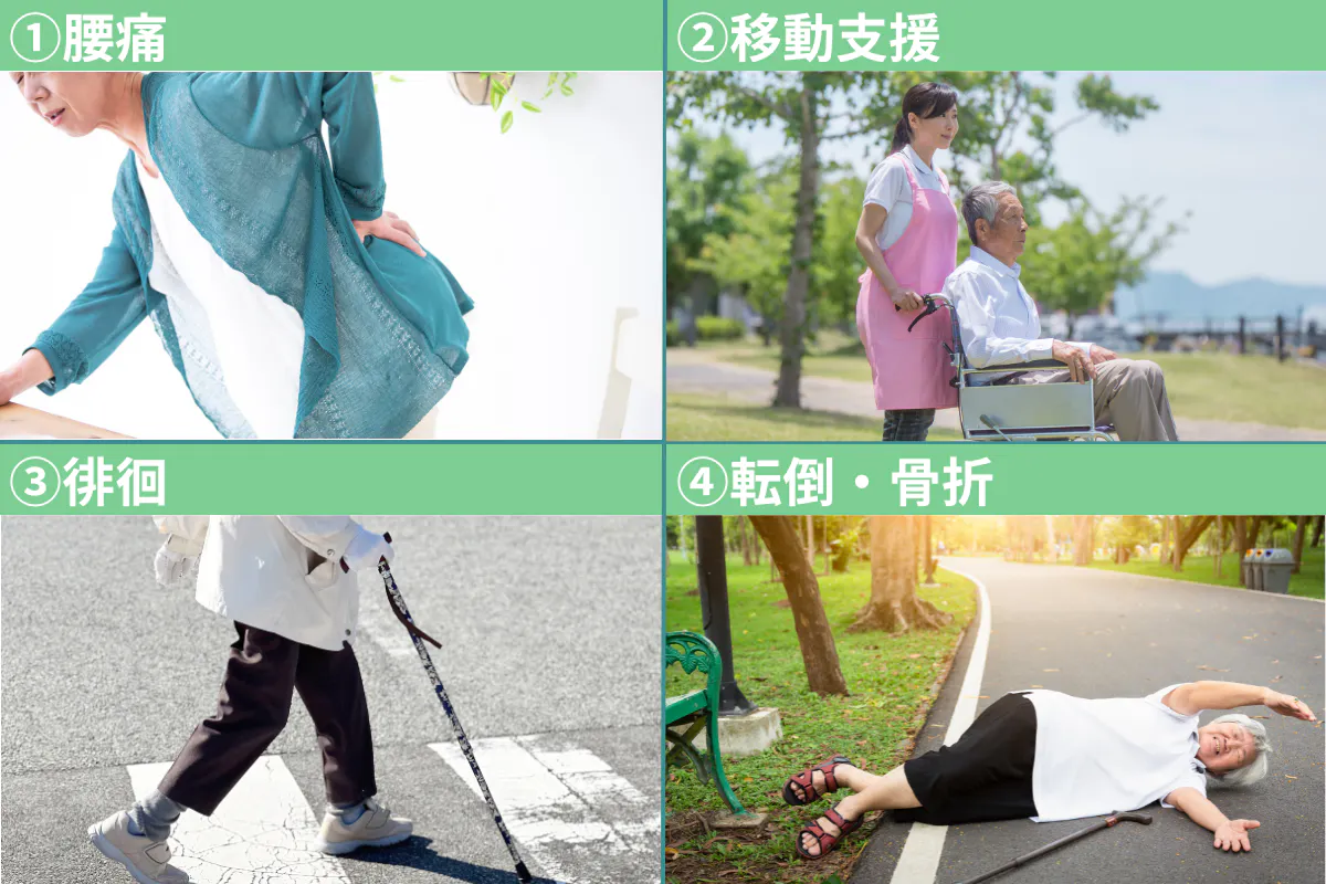 そのせいで介護の負担が増大し、下記画像のように腰痛を始めとした多くの悩みが生じているのです。