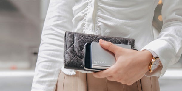 クレジットカードと並べてみるだけで、そのコンパクトさが一目瞭然。洗練されたデザインは、ビジネスの場面はもちろん、日常生活においても高い実用性を持っています。