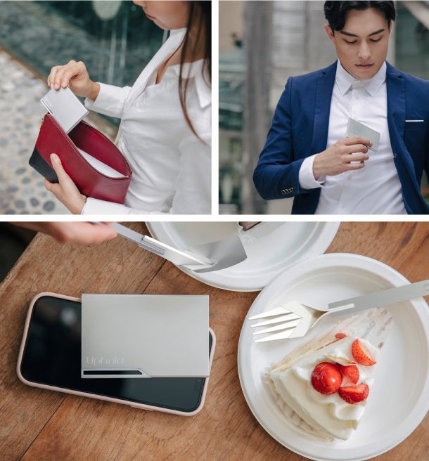 持ち運ぶカトラリーの要は、そのサイズと利便性。Upholdのトラベルカトラリーは、名刺入れと見紛うコンパクトさを持ちながら、日常の持ち歩きに最適です。