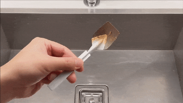 人間工学を考慮した特別な形状に設計されています。これにより、容器の角や淵にアクセスしやすく、食材を効率的にすくえるようになっています。
