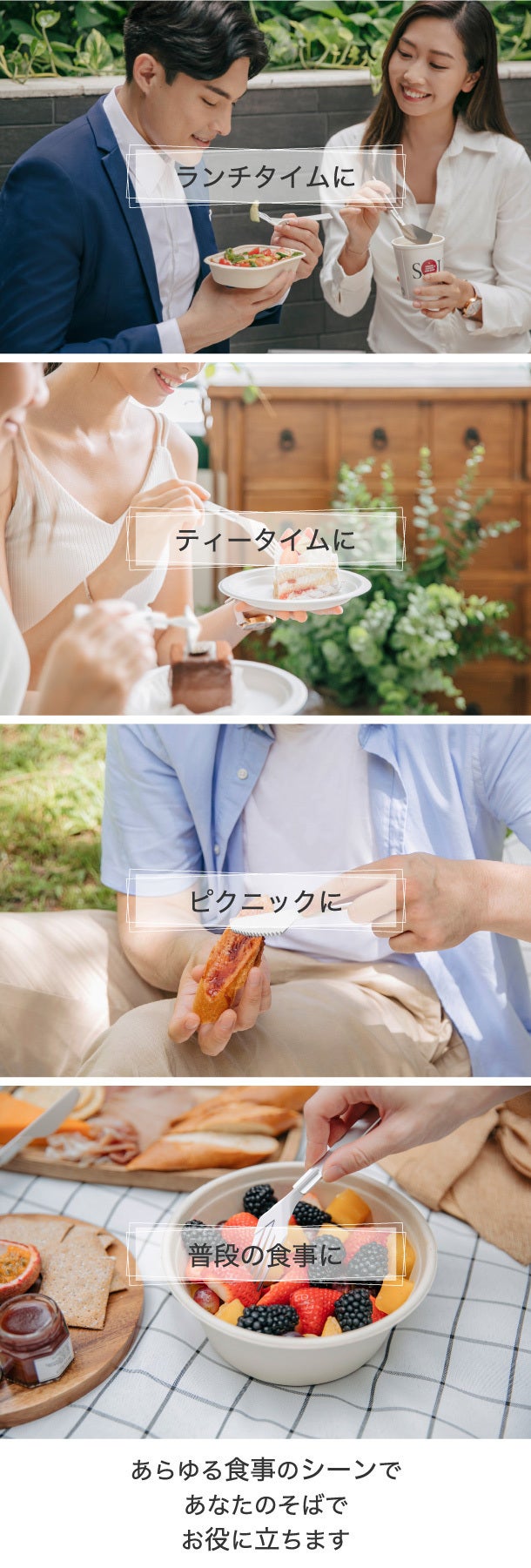 このカトラリーは環境への思いやりを形にしたアイテムですが、そのデザインが持つ美しさから所有欲も刺激します。ただのツールとしてではなく、ファッションアイテムとしても注目の的。使う人の環境に対する配慮を静かに、そしてエレガントに伝え、あなたの高い価値観をアピールする素敵なツールとなっています。