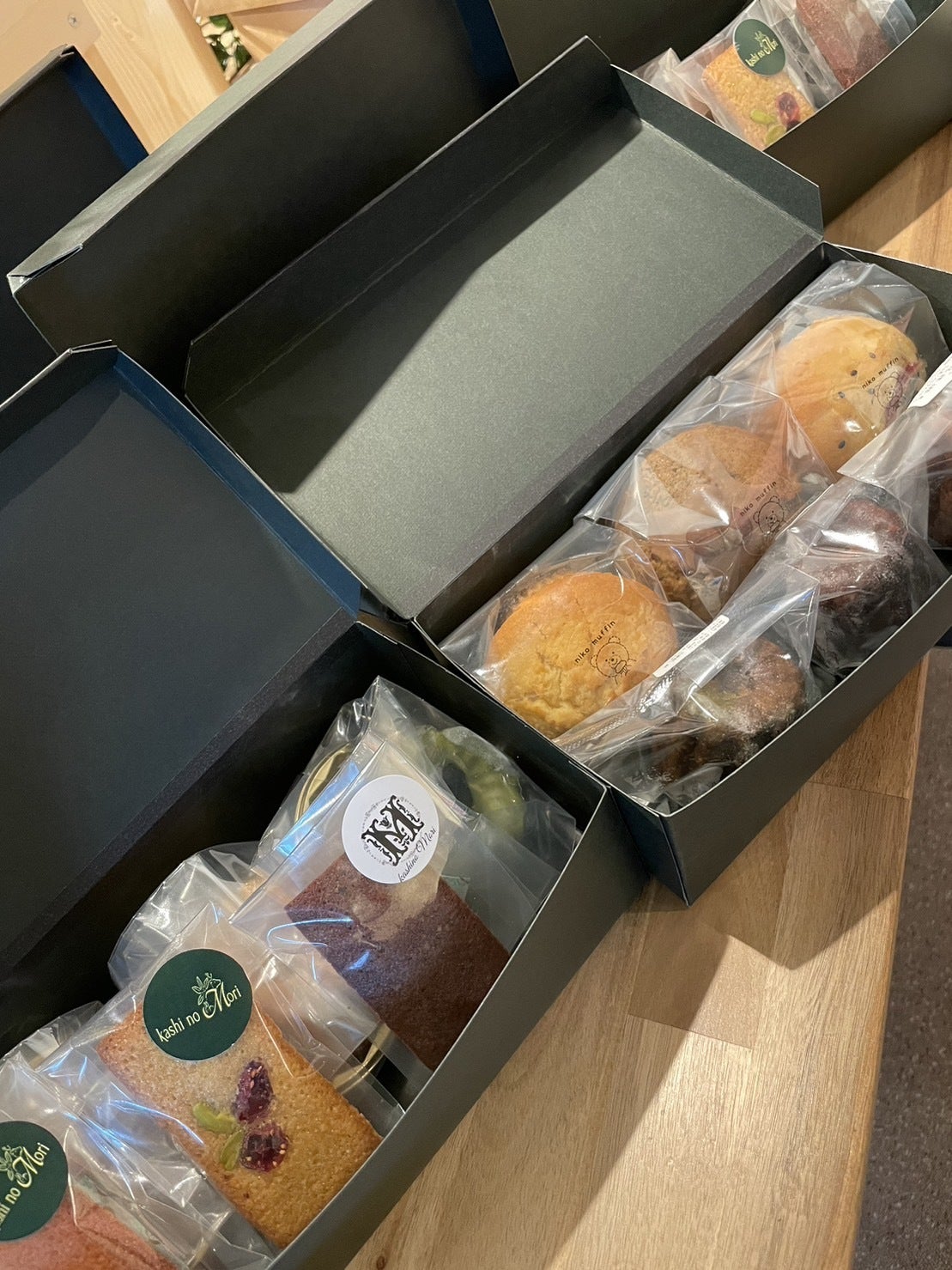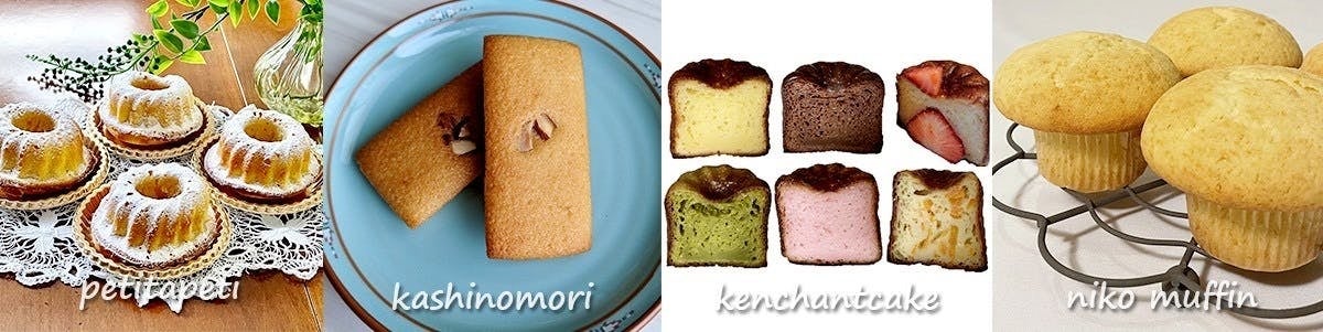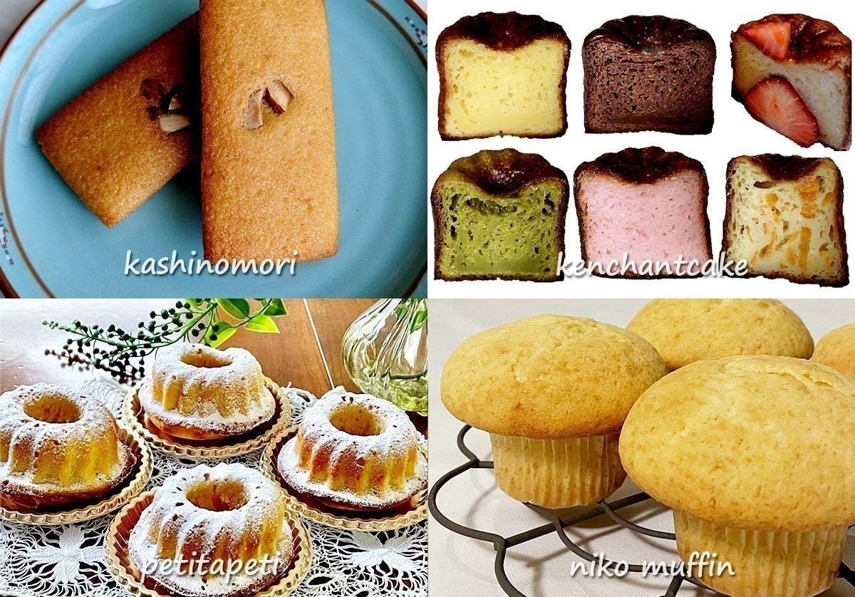 (petitapettiのクグロフ,kashinomoriのフィナンシェ,kenchantcakeのカヌレ,nikomuffinのマフィン)