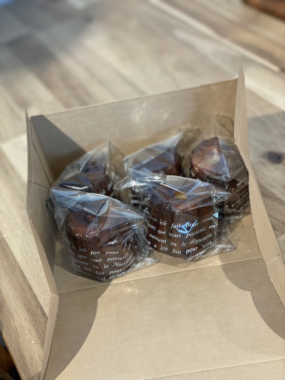 【クラウドファンディング活動報告】kenchantcake編vol.1 カヌレ専門店kenchantcake の健さん、箱を手にニコニコとお店に寄ってこられました。「ちょうどいい箱、見つけたよ〜」と。カヌレ5個入りセットを配送するための箱です。 じゃじゃじゃ、じゃーん!!!!たしかにちょうどいい!(笑) 今回のクラウドファンディングにKOKOPLUSが挑戦した目的は2つあります。ひとつは「新しいオーブンを導入して、パティシエ達がもう一歩前に新たな挑戦をすること」そしてもうひとつは、「パティシエ達のそれぞれの挑戦を応援して下さるかたを増やすこと」 そのために、ご支援いただいた方への返礼品として、パティシエ達の挑戦の成果をご用意させていただきました。どんな挑戦でも、やはり初めの一歩はとても勇気がいります。だけど、その挑戦を、支えてくれる人が、応援してくれる人が、そして楽しみにしてくれている人がいるということは、挑戦者にとっては、とても心強いことです。そんな返礼品のおひとつが、kenchantcakeの挑戦の成果。「カヌレの冷凍発送」冷凍にすることでより多くの方にカヌレをお届けできるようになります。記念すべき第1回目の冷凍発送商品を、返礼品にさせていただきました。気になっていたけどまだ召し上がっていないかたはもちろん、既に召し上がっていただいている方も、ぜひ、kenchantcakeのチャレンジを応援して下さるとうれしいです。 なお、冷凍カヌレは以下の返礼品に含まれます。①kenchantocakeカヌレ5個セット 3500円②4店詰め合わせセット 5000円(4店×2種=8個の焼菓子)③4店詰め合わせセット 7500円(4店×3種=12個の焼菓子)