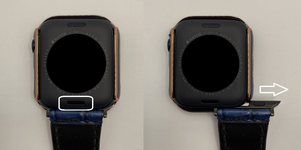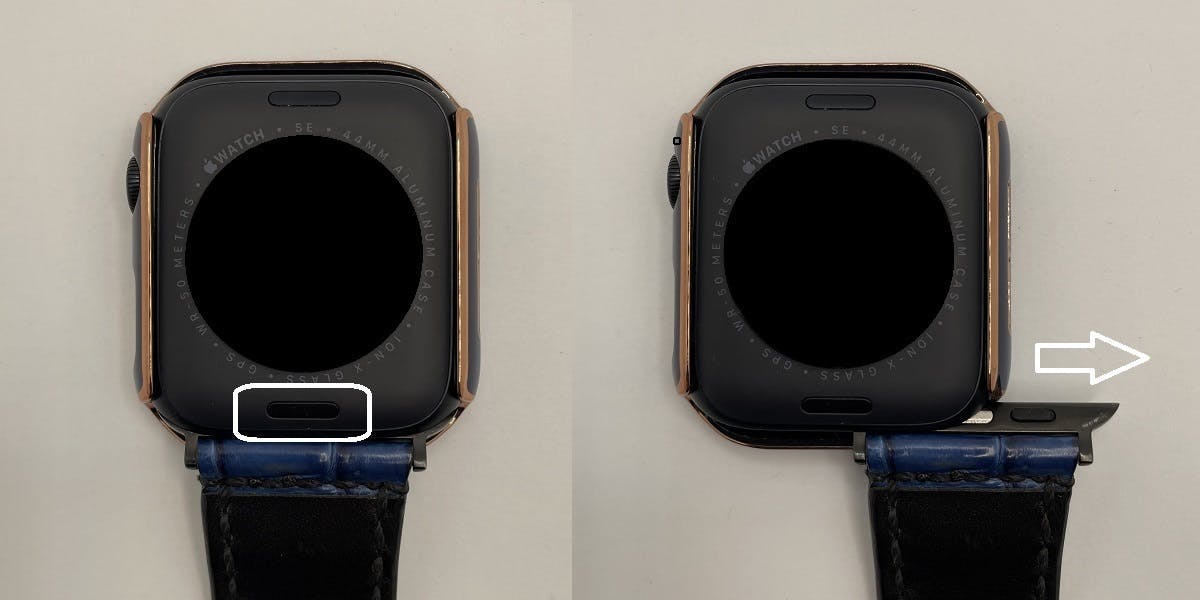 1.Apple Watchのバンドリリースボタンを押し下げます。