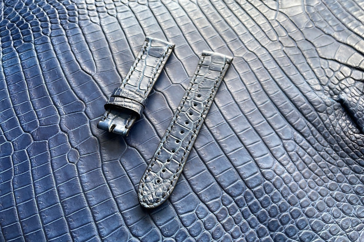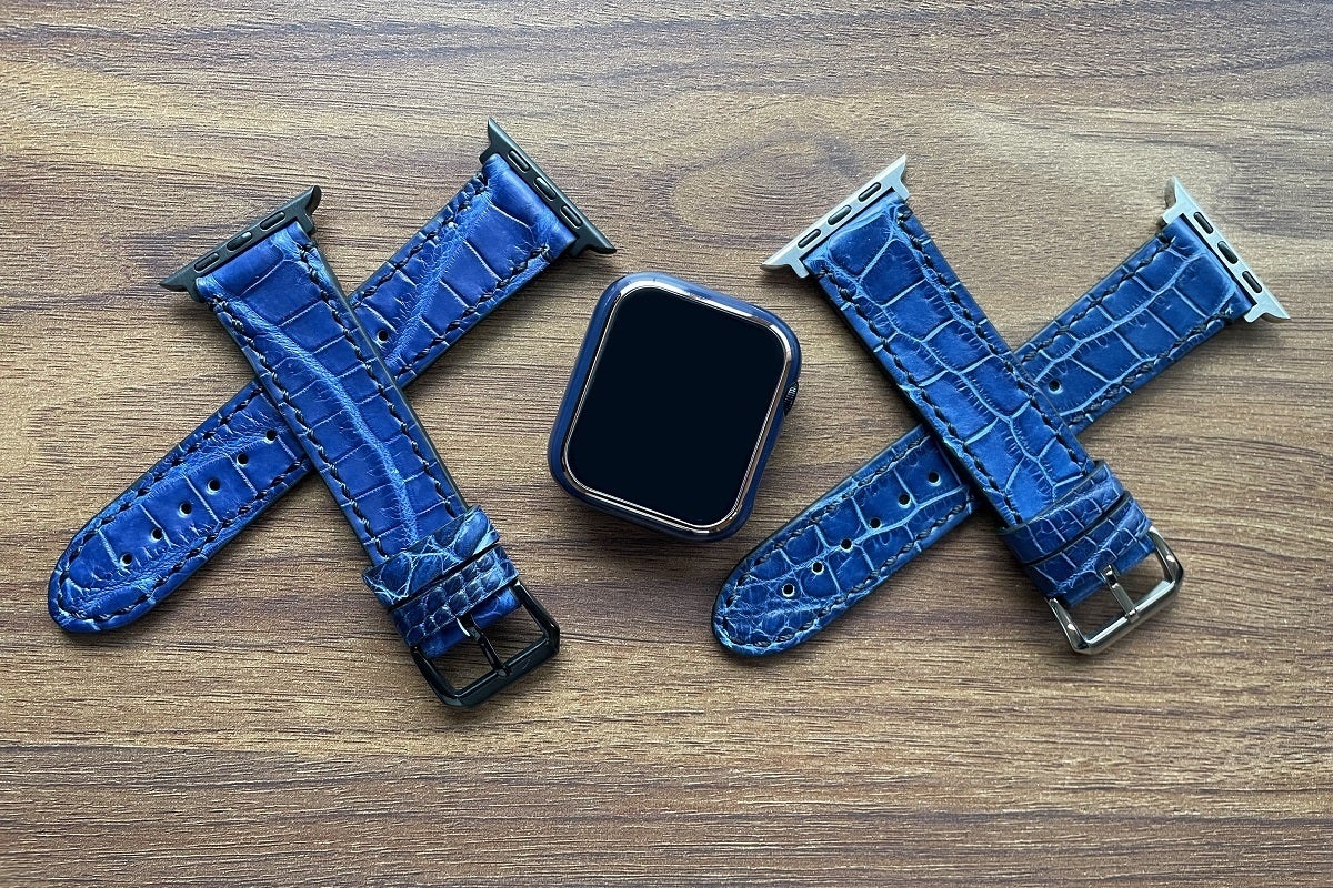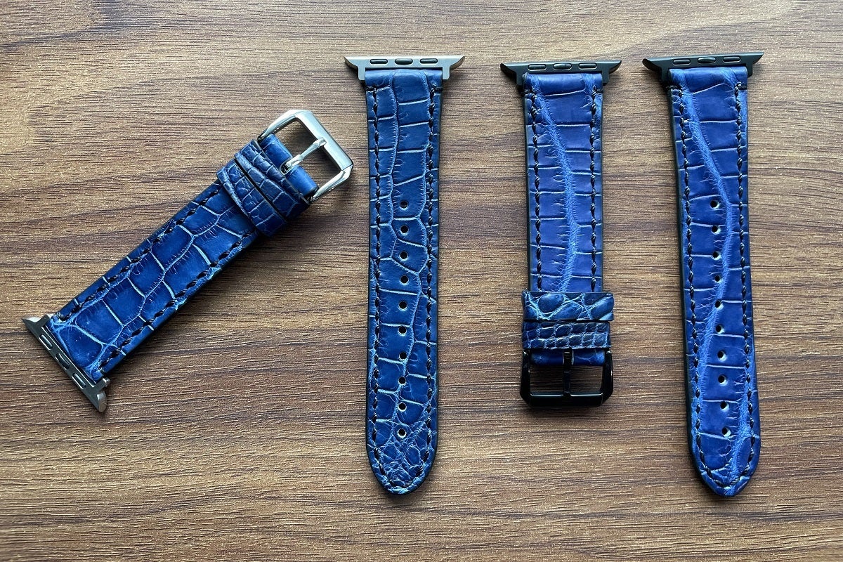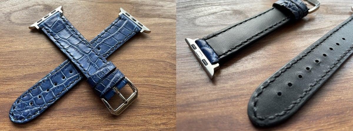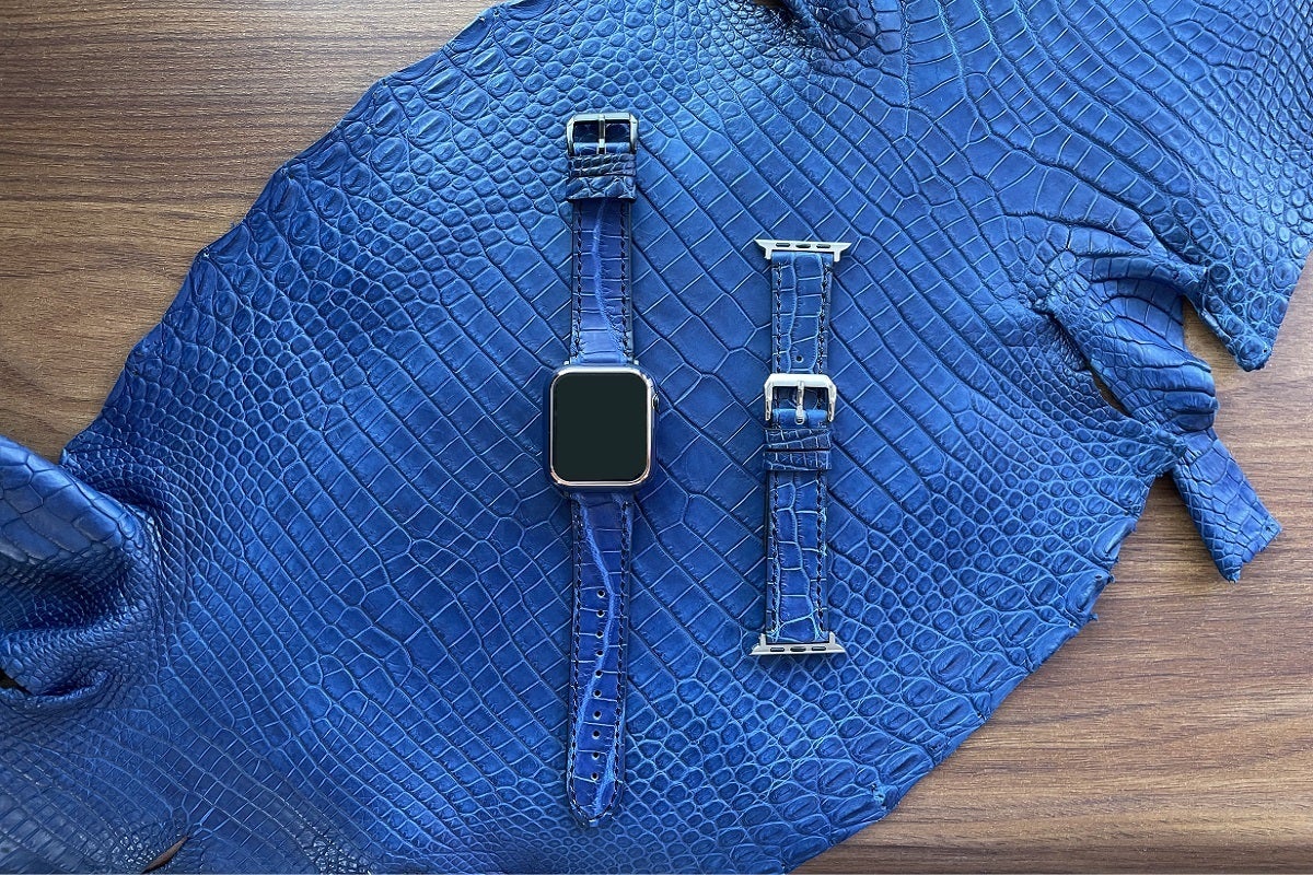 合皮、合成繊維のアップルウォッチ専用バンドは多くありますが、天然の革で製造販売されているものは少なく、あっても価格が高いメージがあります。特にクロコダイルは、革の選別から厳しい基準をクリアしなければならない為、稀少価値が高く、高額な商品になっております。