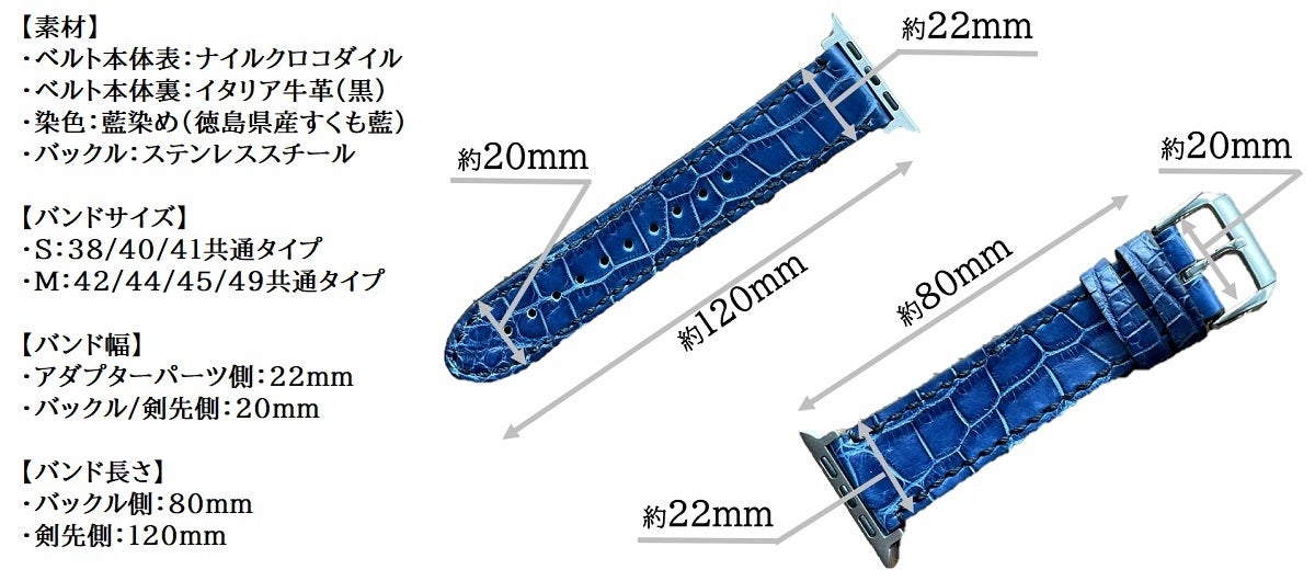 このたび、『クロコダイル藍染Applewatch用バンド』を80本限定となりますが、CAMPFIREにてご提供させていただきます。