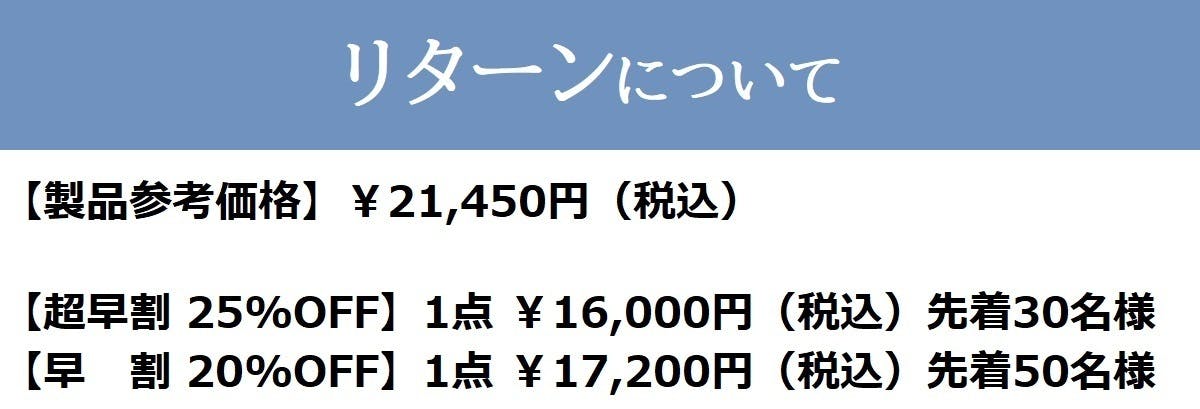 *デザイン・仕様は変更になる場合もございます。ご支援者数の状況、使用材料の供給状況、製造工程上の都合等により出荷時期が遅れる場合があります。