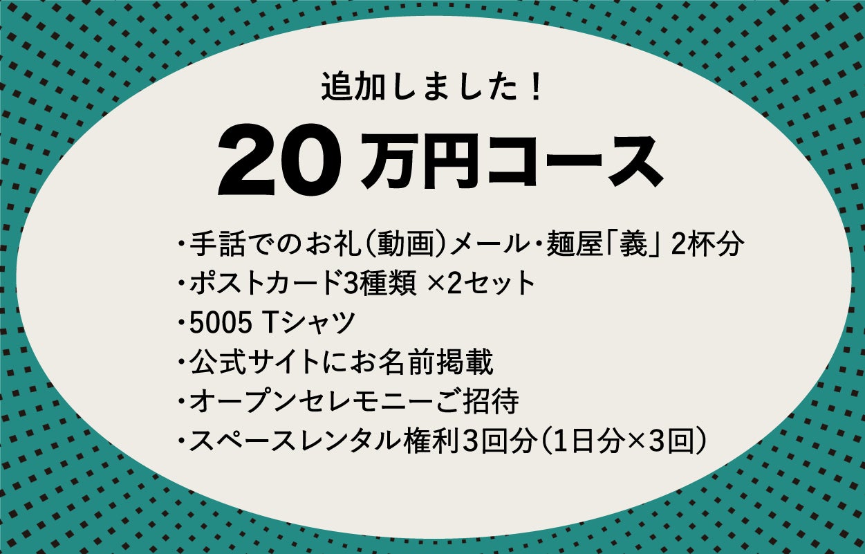 10万円コースと50万円コースの間にちょうど良い金額のコースはないのかという声もいただいいており、支援コースの追加をいたしました。