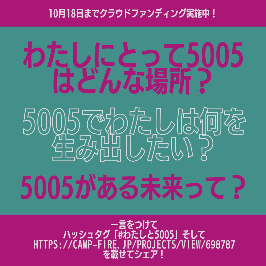 こんにちは!5005共同代表の牧原です。8月下旬からスタートしました本プロジェクトですが、本日目標額の700万円を達成することができました!ひとえにこのプロジェクトをご応援・拡散してくださった皆さんのおかげです。ニュースをきっかけにご関心を抱いてくださった方、今後5005を使いたいと考えてくださっている方...さまざまな人たちから激励のメッセージをいただき、とても嬉しく思っています。本当にありがとうございます。700万円を超えたご支援は引き続き施工費に使わせていただく予定です。クラウドファンディング終了まであと29時間、最後まで走り抜きたいと思います。何卒皆さん、引き続きご応援のほどよろしくお願いいたします。改めまして、本当に皆さま、ありがとうございました!