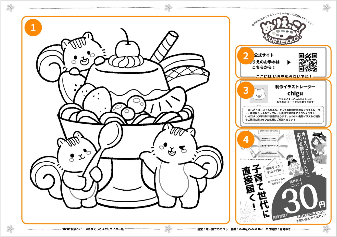 ・毎月10名のイラストレーターのぬりえをメルマガ形式で無料配布。