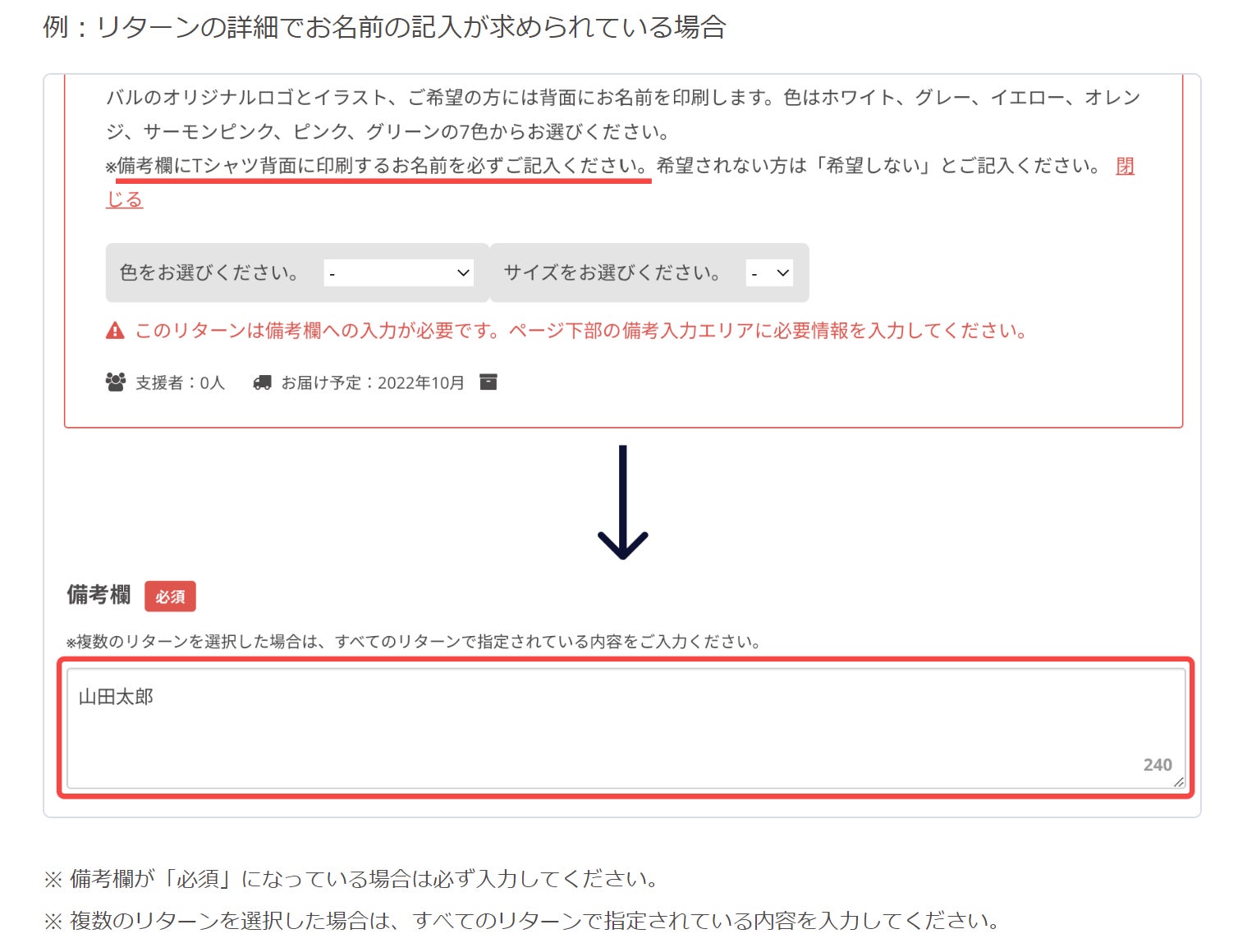 A:ご購入して頂いた後、必要事項を記入していった際に、以下のように備考欄が現れます。