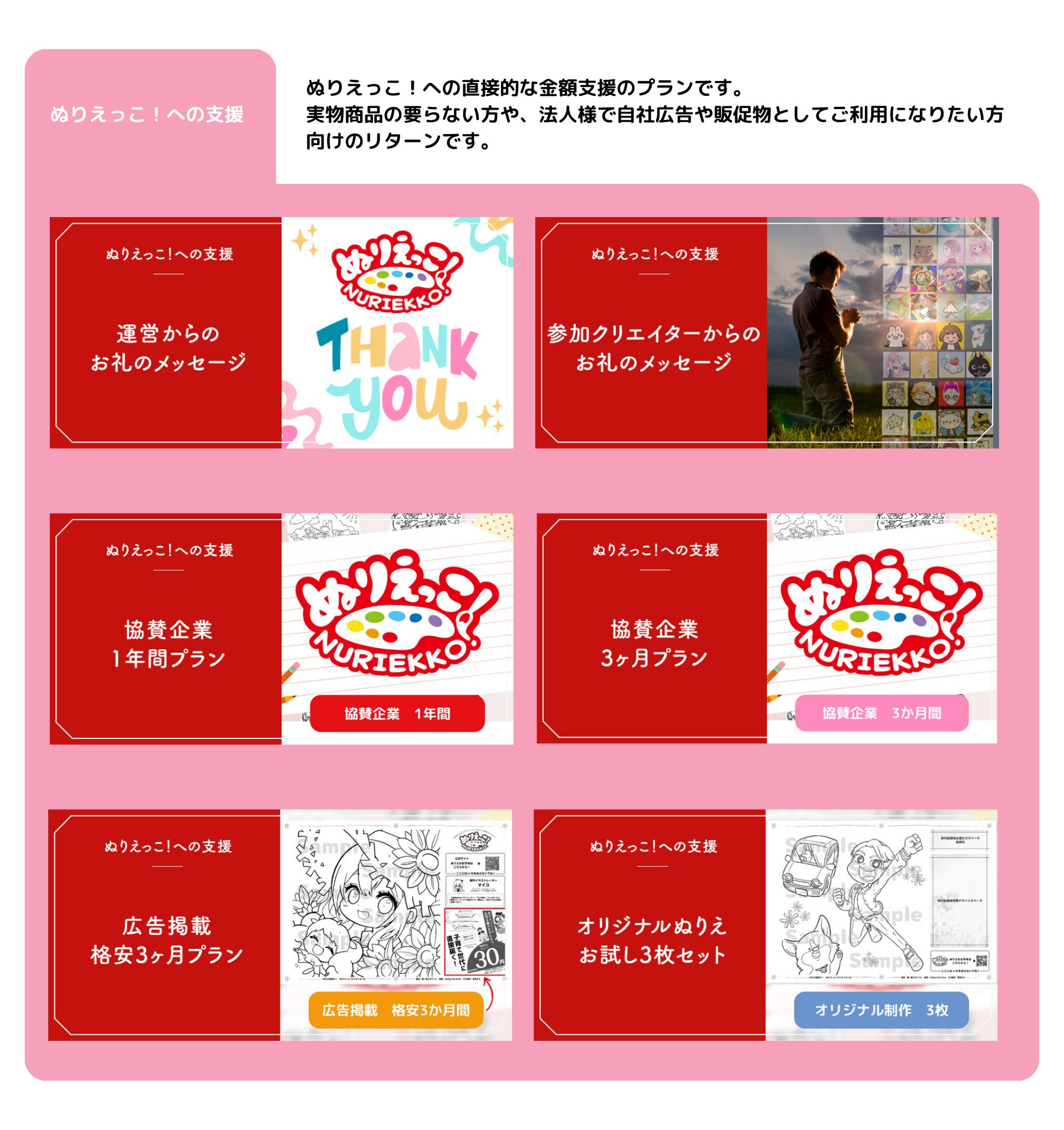 A:ロゴを掲載させる方法は2種類です。①ぬりえっこ!の広告枠にロゴを掲載する。②オリジナル版を制作し、ロゴを掲載する。
