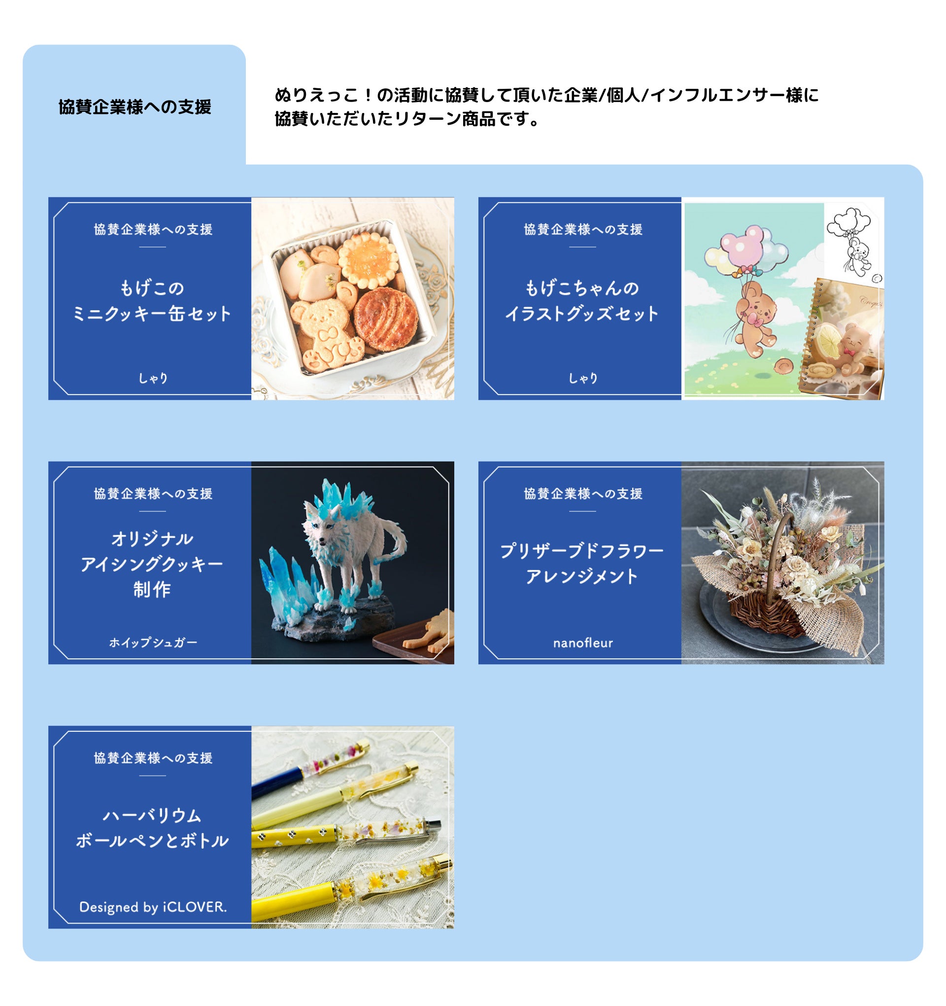 しゃりさんの「もげこのミニクッキー缶セット」は製造の都合上、リターンを締め切らせていただきました。