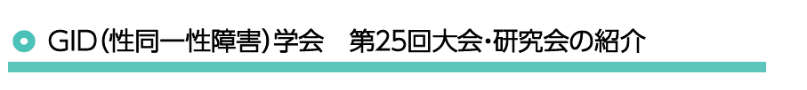 GID(性同一性障害)学会第25回大会・研究会は、このような課題を社会で共有するとともに学際的な議論を重ね、課題解決に向けた意見を集約する場です。
