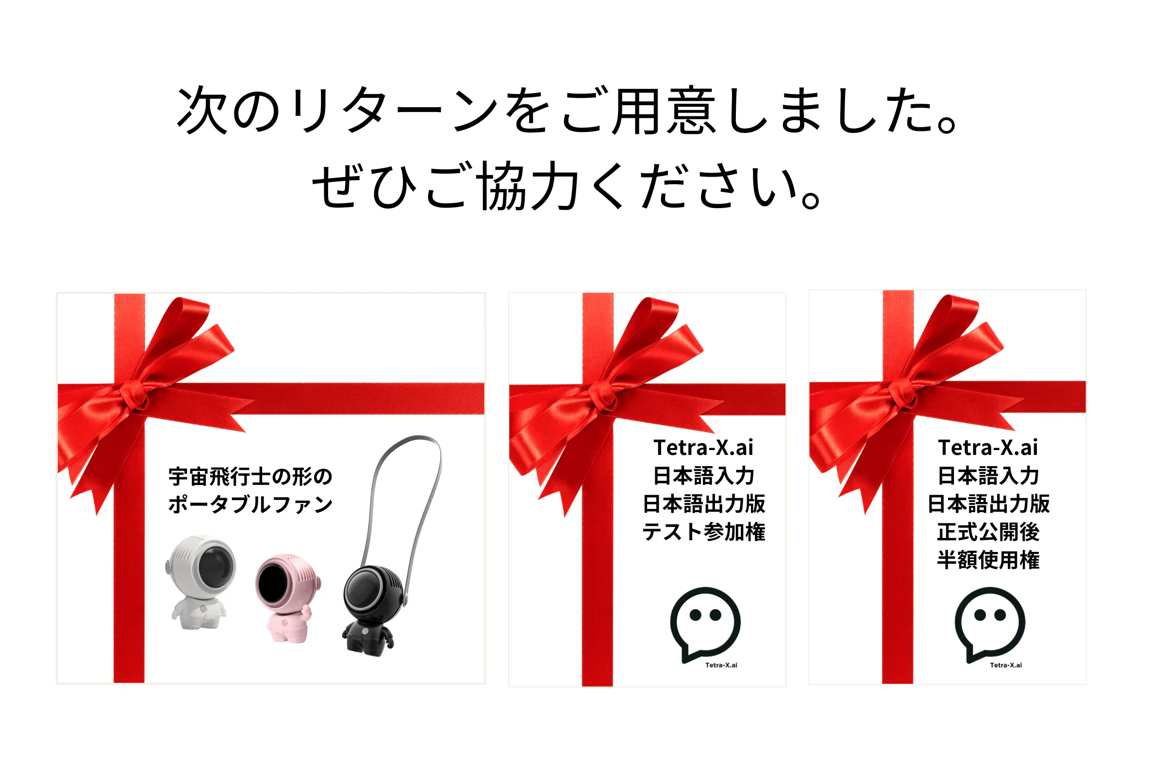 - 2. Tetra-X.aiのテスト参加権(協力者として、発注クライアントとして)