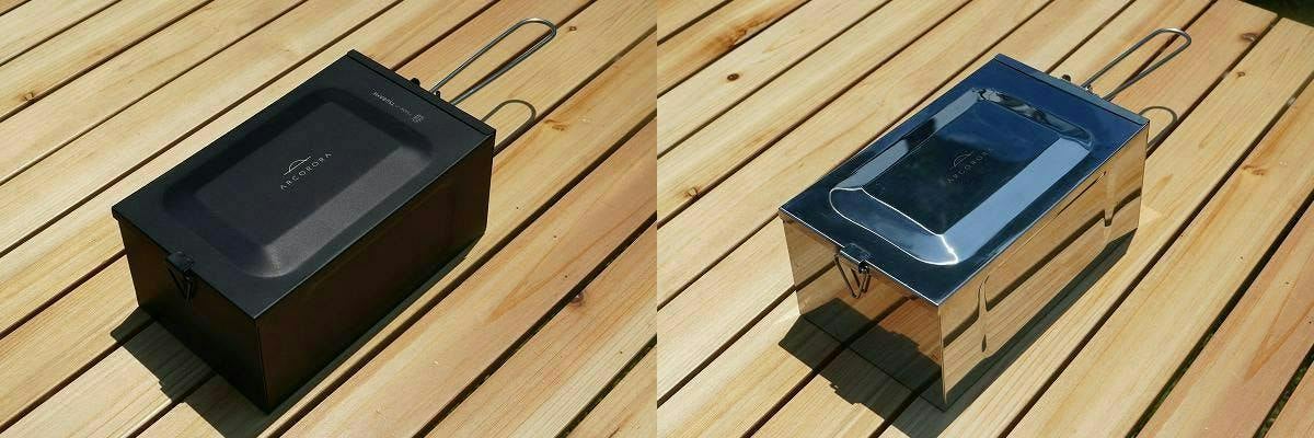 楽しみ方は皆それぞれあると思いますが、私は「キャンプ飯」を楽しむスタイルでよくキャンプに行きます。キャンプ飯もダッチオーブンやスキレット、焚き火直火調理など一通りこなしてくると「燻製料理」にもチャレンジしたくなってきます。BOX(ボックス)は、お客様の「あったらいいな」を実現していく【ARCORORA】と金属加工の街 燕市にある工場によって開発された「燻製をより手軽に、より美味しくつくるための燻製器」です。燻製用の調理器具を探してみたら、ダンボール製から鉄製まで幅広い商品がありますが、どれもこれも「大きい」。ソロか少ない人数でしか行かない私にはちょっとかさばる荷物です。
