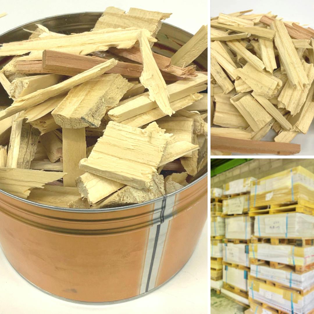 木屑は大きさを1つずつ手作業で揃えて、アロマで香り付けしたソイワックスでロウ引きしています。
