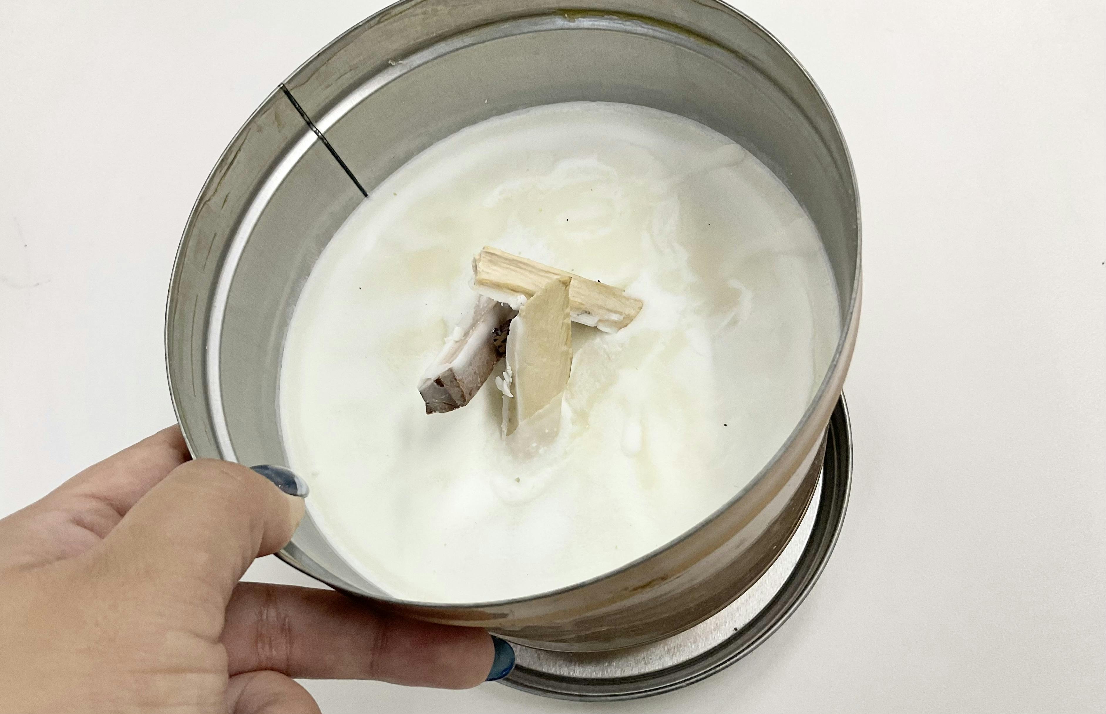 ●炎が大きすぎて危険な場合は、短い木は取り除いたり、消火してワックスが完全に固まってからハサミやニッパーなどで芯を半分くらいにカットするなど火力調節をしてください。