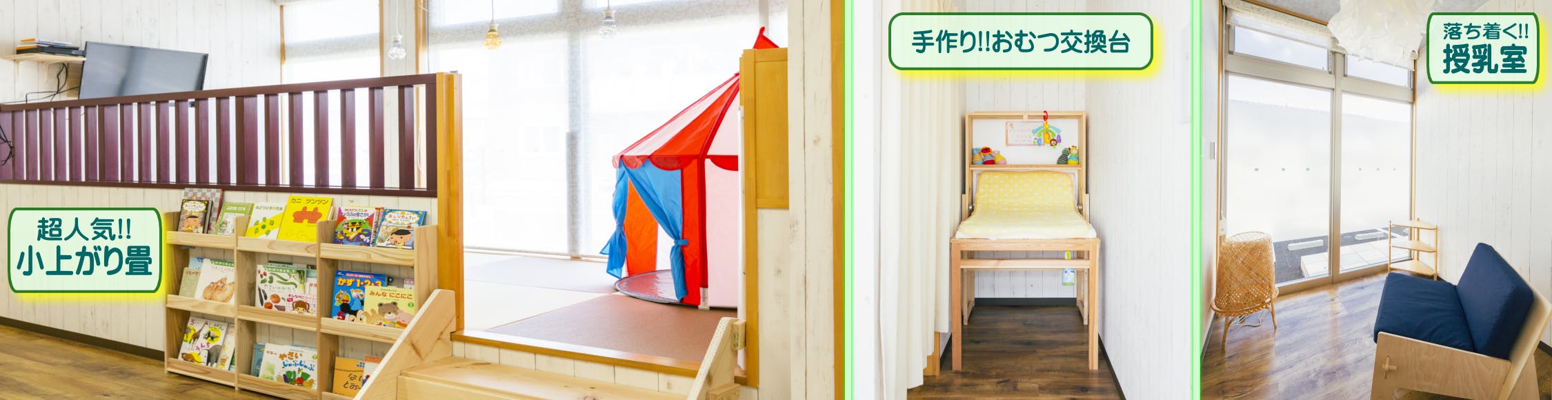 少子化と言われるこの時代に、子育てするママたちの大変さ減らしたり、子育てが楽しい!と思えるような場所が必要!!ということで、ぷれじ~るは子育てママたちの大切な居場所として、保育園を運営する会社がお店をつくりました。