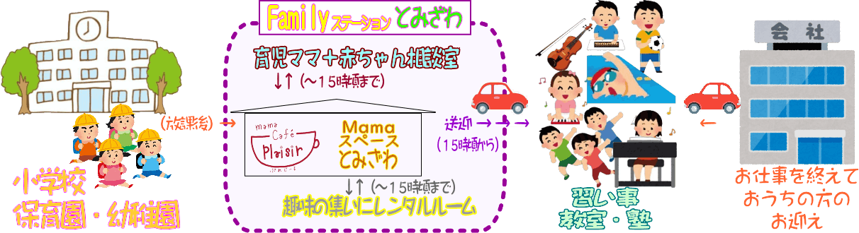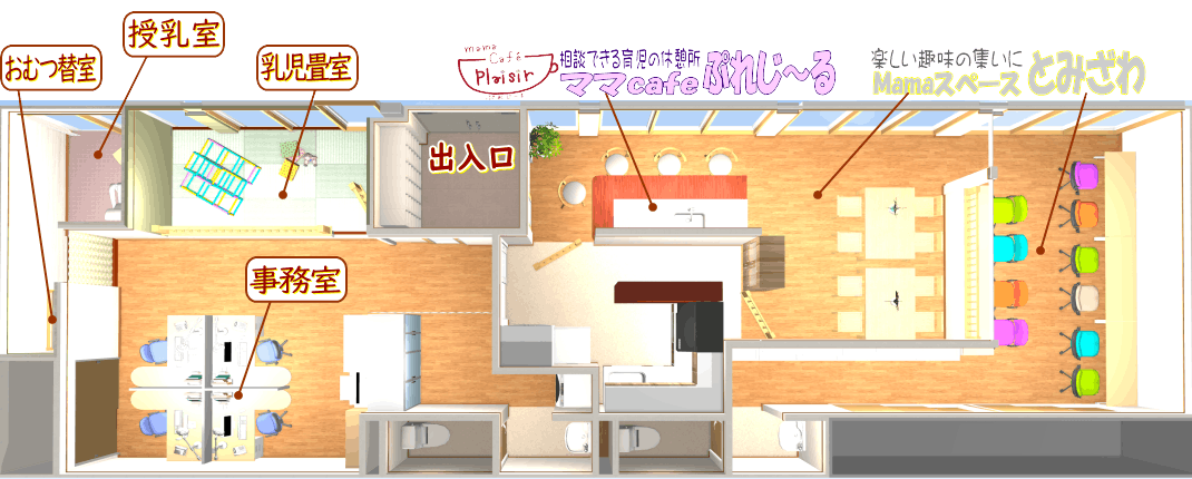 そして、ぷれじ~るは、昼間はママの集まる場所、午後は子どもたちの活動の中継地点となって、働くパパママに役立つ場所にしたいというのが最終的な実現目標です。
