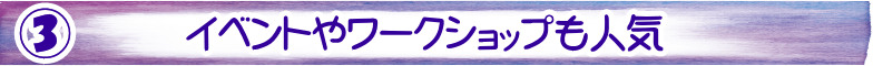たくさんの素晴らしい講師によるイベントやワークショップも賑わっています。