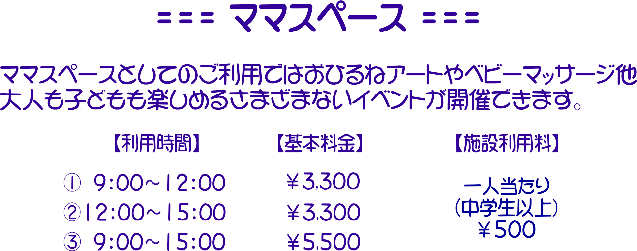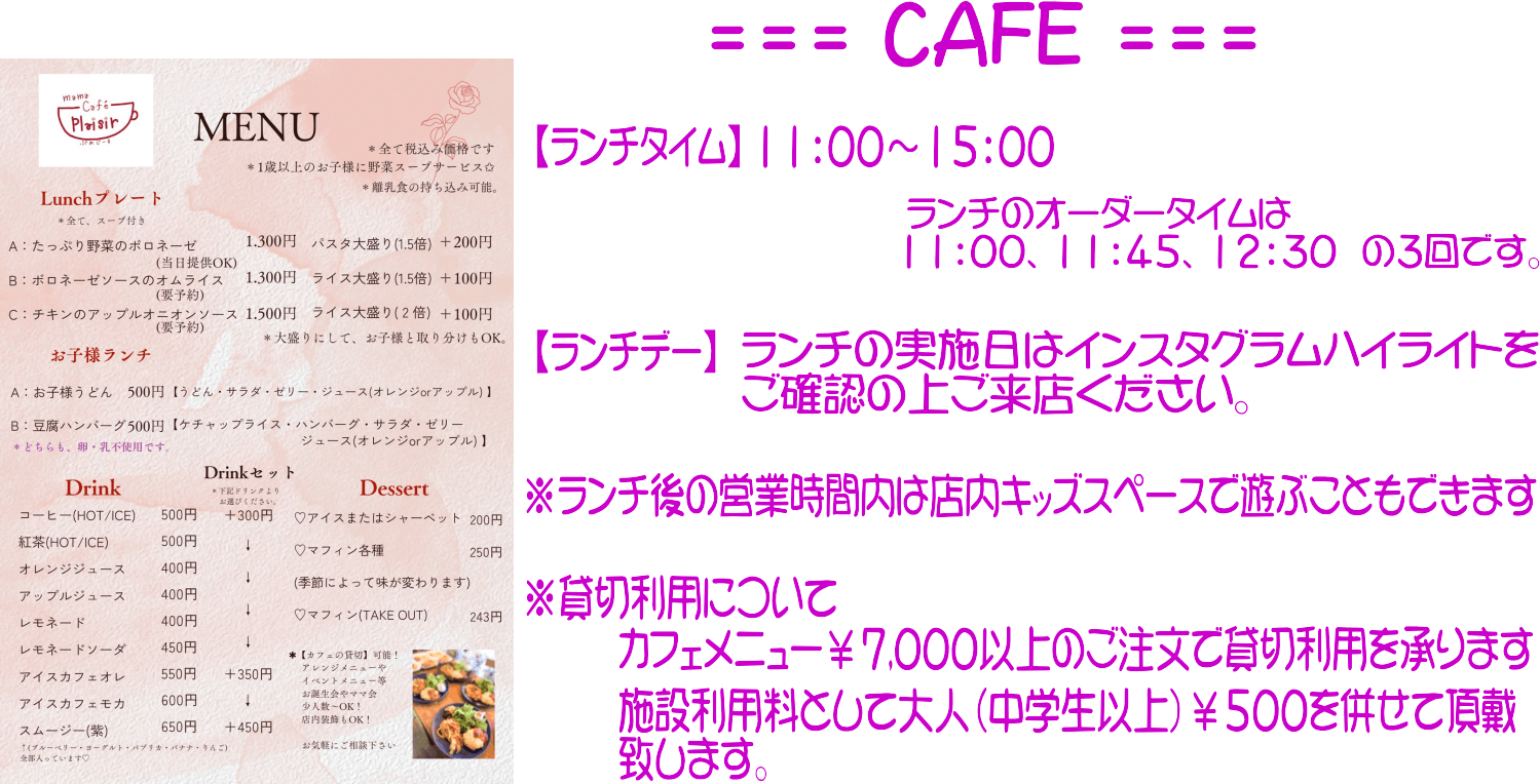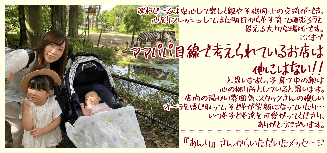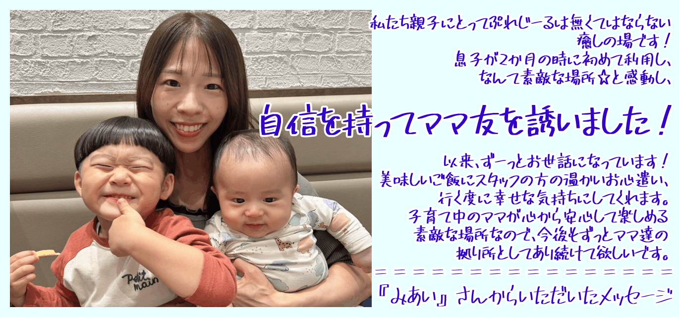 をコンセプトに、ママ・赤ちゃん・子どもたちを"応援したい""笑顔にしたい"という想いで続けてきたママカフェです。
